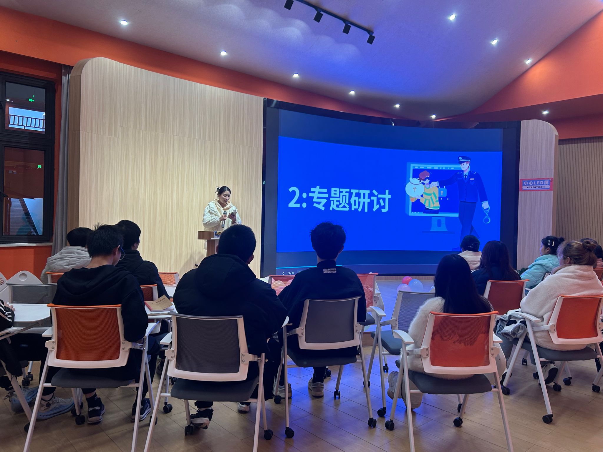 活动伊始,团支书欢迎与感谢所有出席本次活动的同学,在简要介绍活动目的之后,通过宣传和教育让同学们了解各类诈骗手段。让同学们学会辨别真伪,增强警觉,保护自身与他人的利益。其次,对活动的意义进行了介绍,让同学们学习防诈的基本知识,提高自身安全意识,保护人身安全和财产安全,遇到诈骗,避免盲从,多多思考,不要被假象所迷惑。年级长任冰冰对本次活动进行了开场致辞,为同学们讲解电信诈骗的常见手段、案例和风险,从各个方面给同学们进行科普宣传,以此让同学们明白诈骗的危害以及反诈的重要性。
