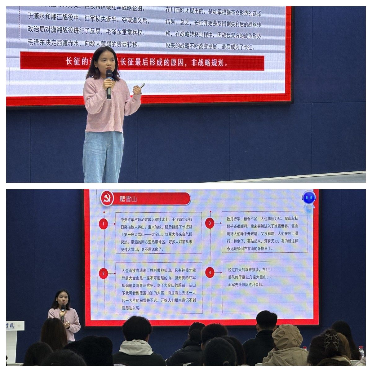 乘百舸争流之势,续中华民族之魂。回首过往峥嵘岁月,革命先烈以大无畏的斗争精神,坚强的意志换来了如今山河锦绣,国泰民安。青马学员作为新时代的青年,革命的接力棒已经到我们手中,是传承更是使命,青马学员们应该不断庚续共产党人的血脉,以鸿鹄之志、爱国之情不断奋斗。淬炼商学院组织部于12月8日在綦河书院观涛·多功能报告厅开展以“忆革命筚路蓝缕·学初心砥砺奋进”为主题的第三期的理论课程学习。