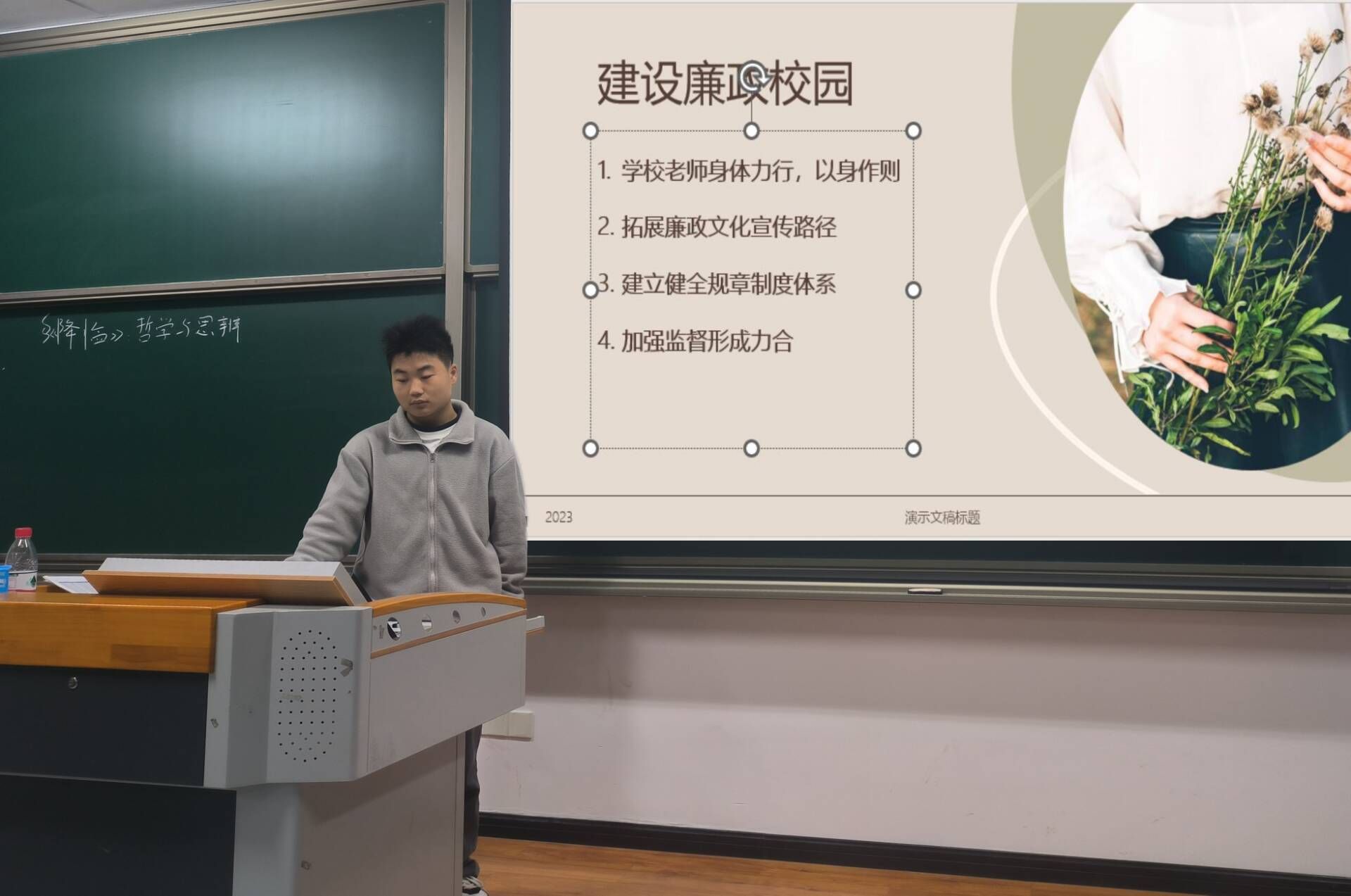 积极学习廉洁知识,主动接受廉洁文化教育是新时代青年走向社会的必修课。习近平总书记高度重视青年一代在成长过程中的全面发展,强调扣好廉洁从政"第一粒扣子”的重要性。愿你们树立理想,坚定信念,把廉洁意识同时代精神相结合;忠于祖国,乐于奉献,让廉洁美德与实际行动相交汇。“岁月悠悠,衰微只及肌肤,热忱抛却,颓废必至灵魂。”希望这次活动让同学们在今后的学习和工作中遵纪守法、明辨是非;修身律己、奋发图强。
