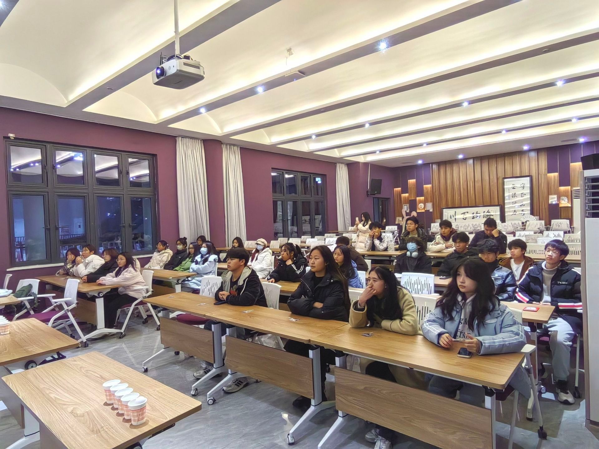 罗曼·罗兰曾说:“世界上只有一种英雄主义,那就是了解生命而且热爱生命的人。”青春在生命中是迷人的,但也如荆棘,危险丛生。接下来到了互动环节,通过两个小游戏,提高同学们的反诈意识。将每个游戏分成不同的组,以团队合作的方式进行。首先是拼图游戏,将电影诈骗海报、反诈骗标语图片撕成几块打乱,通过还原拼图的方式来加深我们对诈骗的印象,率先拼凑出的同学将会获得刮刮卡奖励。活动过程中,精彩内容不断涌现,同学们强记并尝试拼凑出反诈拼图,现场不断发出尖叫和欢笑声……游戏还在如火如荼地进行,在乒乓球反诈游戏中,将几个杯子装满水并排成一列,在第1个杯子中放乒乓球,参与者需要将乒乓球吹到最后一个杯子并保证不能跳出杯子,两个人同时进行,先吹到的即为获胜。这场游戏以轻松愉快的氛围,让同学们体会到迅速逃离诈骗圈套的魔爪,了解到防骗的重要性,同时也可以锻炼他们解决问题的能力。