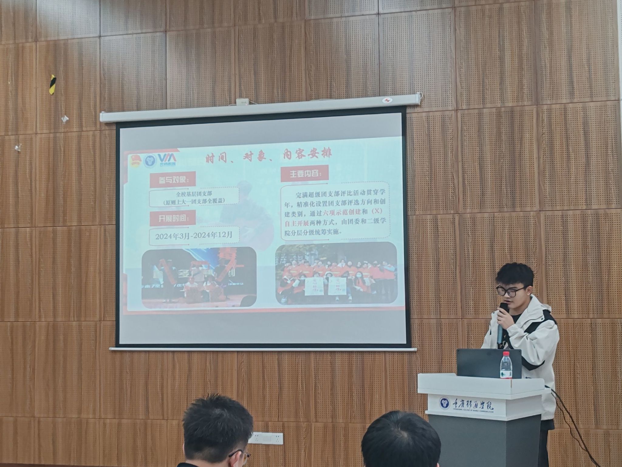 活动伊始,校级组织部部长巫益通过我校特色完满超级团支部为抓手,以完满超级团支部的策划为重点,向各学员讲解了策划的大致内容,并告诉学员们要想写好策划,首先要明确自己的目标,并不断进行调整策划,实施分工,发挥自己学生干部的职责,引领班级同学,从导向性,科学性,吸引力,教育性等方面找准定位,注意细节,立足结果抓主体。