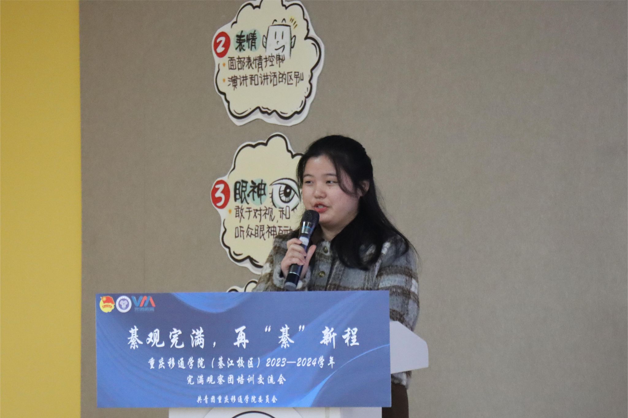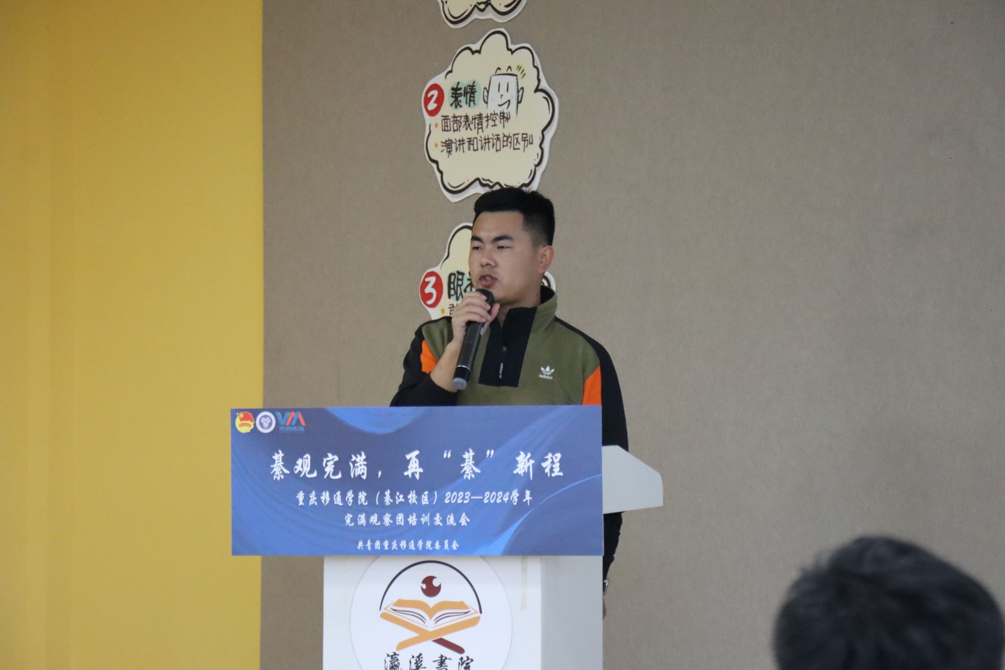 在充满活力和多元特色的移通校园里,有一群特殊的人存在,他们就是完满观察团。他们以独特的视角、观察、感知推动着完满教育的不断发展与优化。为促进完满教育更好发展,让更多学子了解完满教育带给我们的独特意义,校团委调研部于11月29日在瀛溪书院语者·演讲培训室主办了2023-2024学年完满观察团第一次培训交流会,本次培训交流会邀请到校团委后玉良老师为观察团成员传授工作经验。