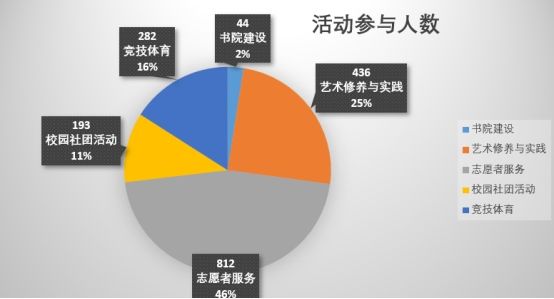数字经济与信息管理学院11月完满教育活动中,志愿者服务板块占比人数最多,超越艺术修养与实践版块,为812人次;书院建设类占比人数依旧最少,为44人次。完满教育要求学生综合提升、全面拓展,上月就书院建设类占比人数过少的问题已做出创新宣传,从多个方面入手,例如,增加活动的宣传力度、丰富活动内容、结合其他活动、邀请院长老师、采取激励措施等,吸引更多的学生参与了解活动的意义和价值,但活动的建设发展是一个潜移默化的过程,现在效果并不明显,为此我院会持续关注目前较为薄弱的版块发展,实现完满教育综合发展的目标。