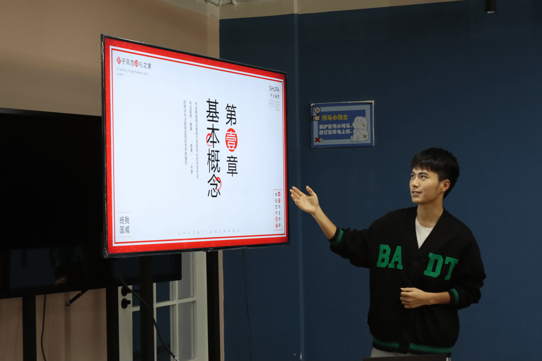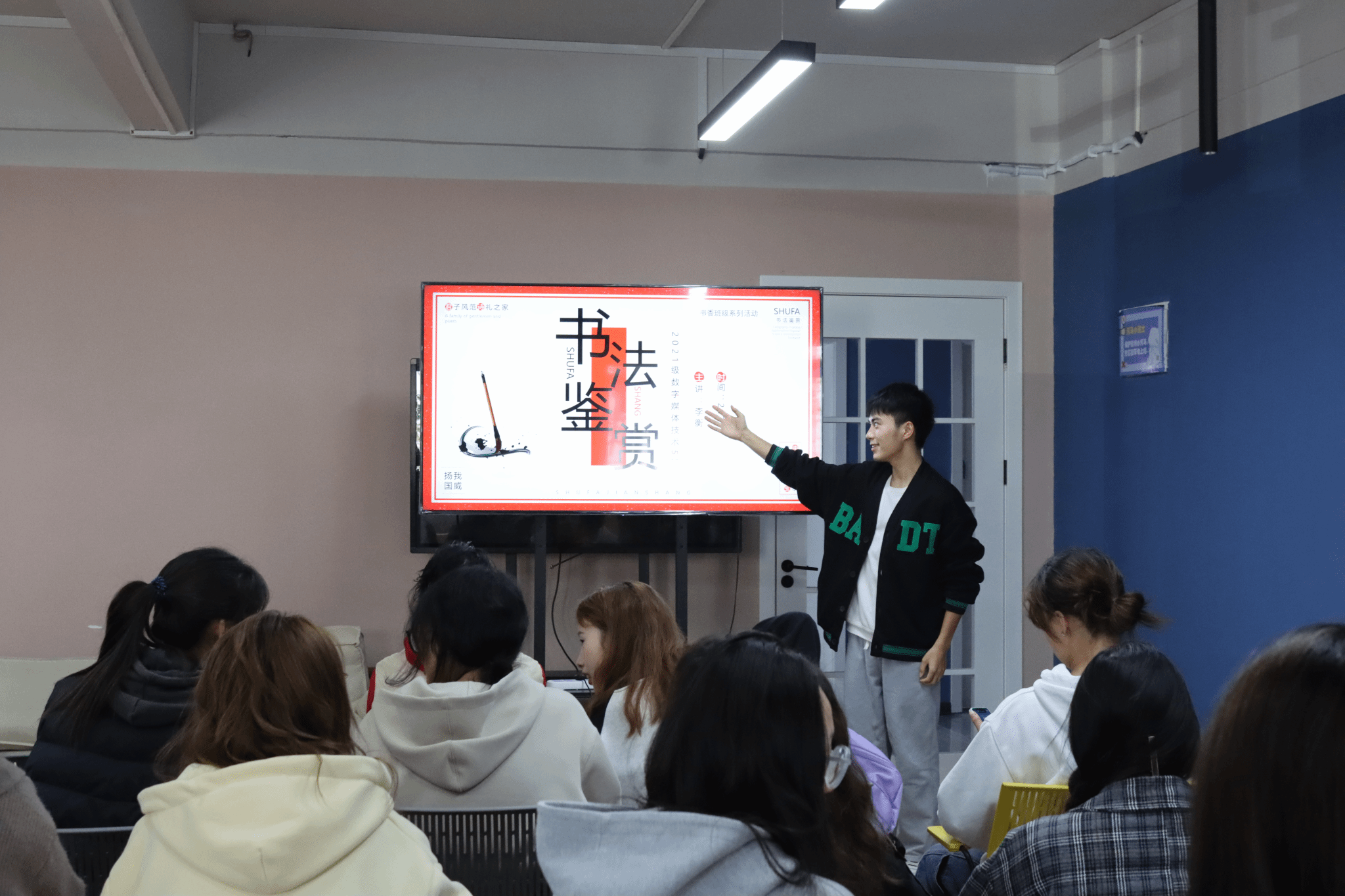 书法是中华民族独创的一种艺术,是中华民族的优秀传统文化之一。它不仅与中国绘画同源,相辅相成,而且也是中国哲学、东方文化与华夏民族精神气质的象征。为继承和发扬传统文化,提高同学们的审美能力和文化素养,大数据学院2021级数字媒体技术5班于2023年11月8日16:00在綦河书院3号楼创客交流空间开展了“书香伴成长,经典书法作品赏析”主题书法鉴赏活动。