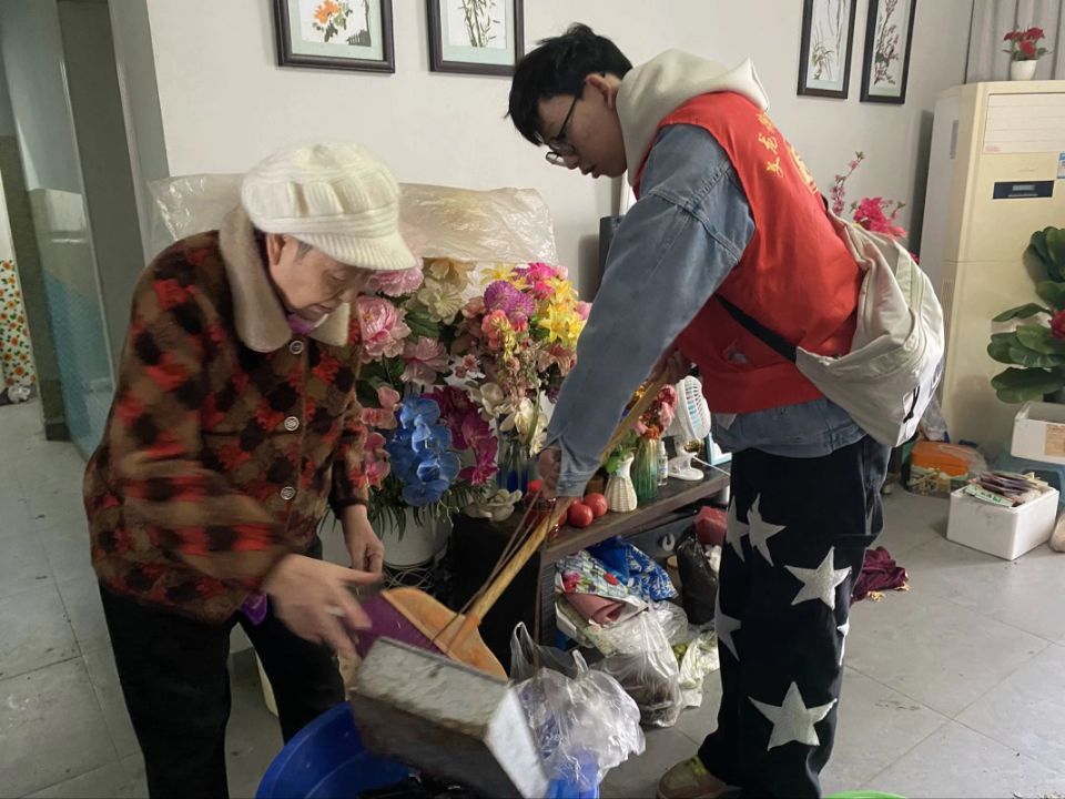 志愿者们为老年人捏肩、捶腿、清扫房间。不仅帮助老年人舒缓了身体上的不适,还进一步加深了志愿者与老年人群之间的友好关系。同时,自主打扫老年人的居住环境,为他们营造一个干净舒适的生活空间,也体现了志愿者们对老年人的尊重和关爱。真正实现了用心连接世界,用爱传递温暖。
