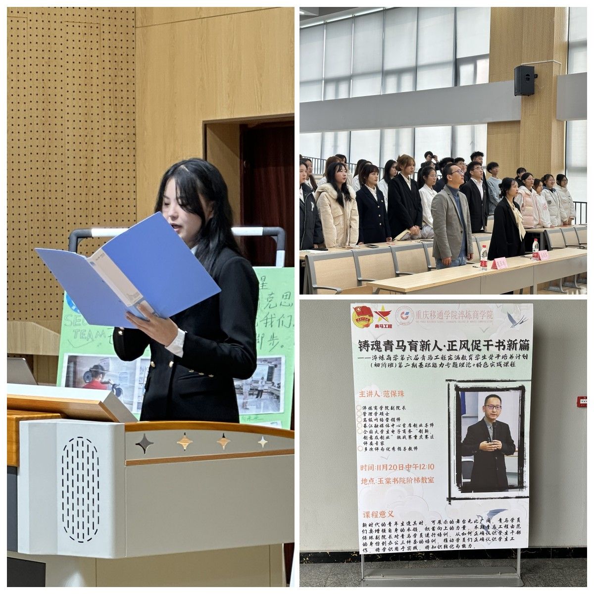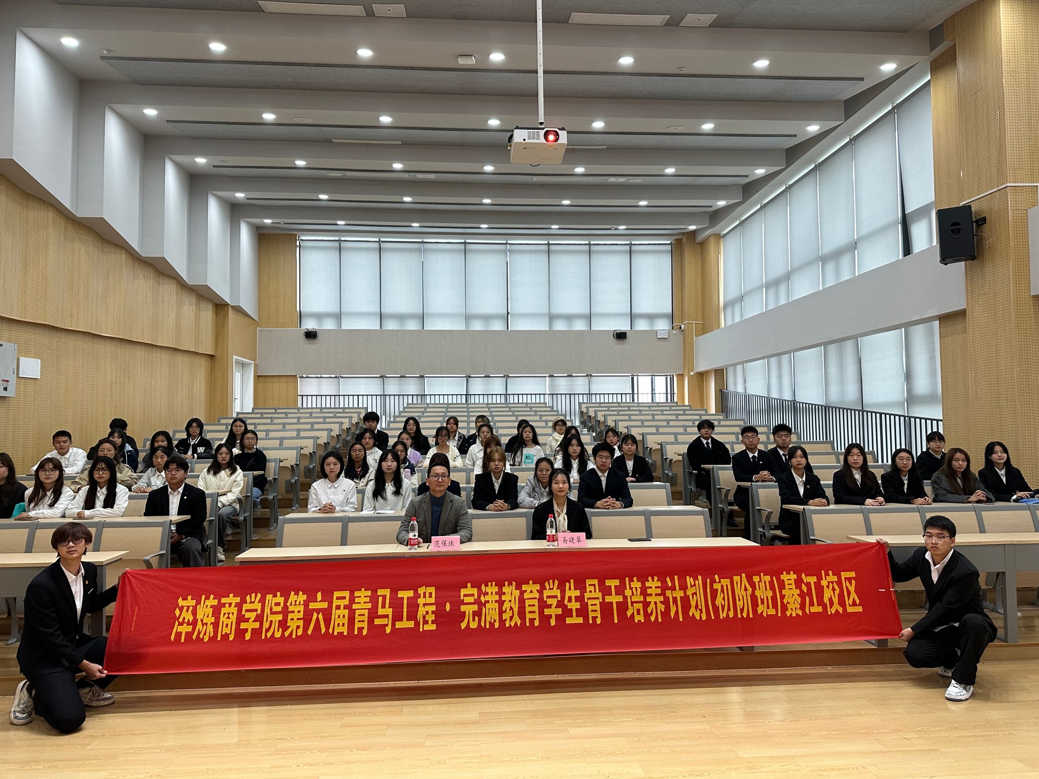 立身百行,以学为基,学习可以增智长才、厚德明志。为推动青马学员思想觉悟、提升实践能力,明白作为学生干部的责任担当,淬炼商学院团总支组织部于2023年11月24日在玉堂阶梯教室举行淬炼商学院第六届青马工程完骨初阶班第二期基础能力专题理论暨特色实践课程。出席本次会议的人员有淬炼商学院副院长范保珠、组织建设板块指导老师易晓翠,以及初阶班全体同学。