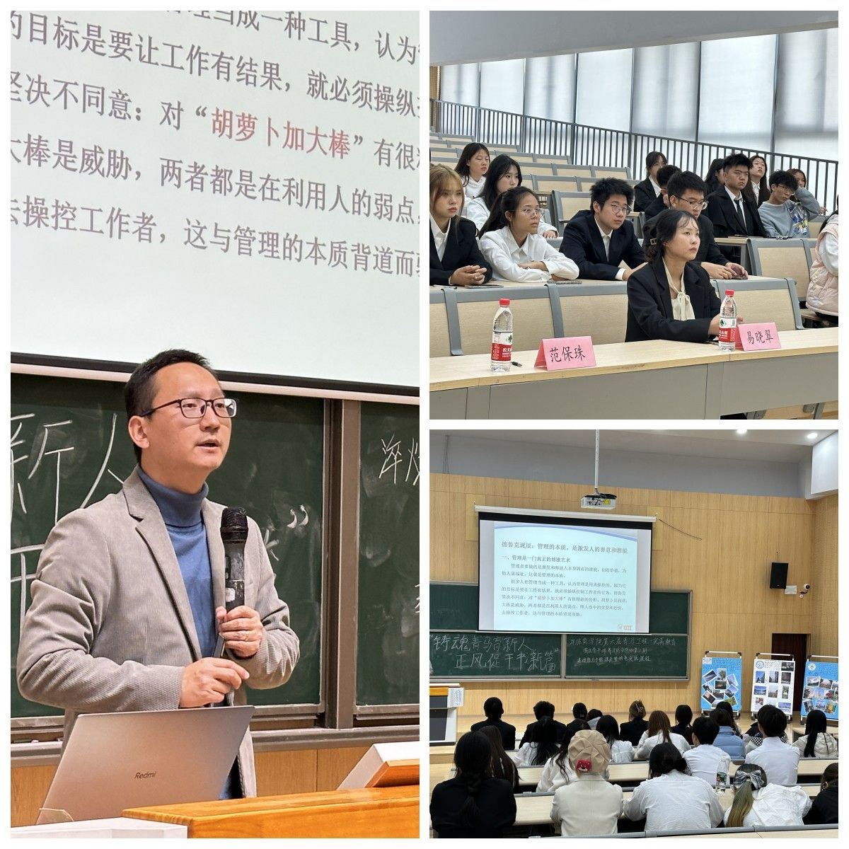 行之力则知愈进,知之深则行愈达。有了深刻的理论认识,实践才越有方向感。课程培训开始,由淬炼商学院副院长范保珠为学员们带来第二期基础能力专题理论,范保珠副院长以“管理的本质,是激发人的善意和潜能”进行课程引入,讲解了管理的实质,管理的意义,并表示各位青马学员作为学生骨干更应了解“管理”二字,在日常的学生工作、活动的开展中,首先要理清自身思路、明确活动开展的步骤,把活动做细、做好。最后,范保珠副院长寄语各位学员们要明白作为新时代的青年,要怀着一腔赤诚与热血,砥砺自身,拼搏实干,更要敢于立大志、明大德、成大才、担大任,争做数字经济时代高情商经营管理人才。