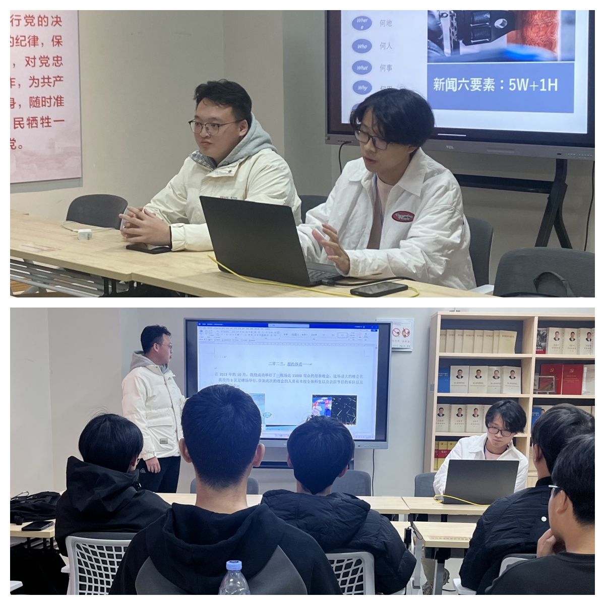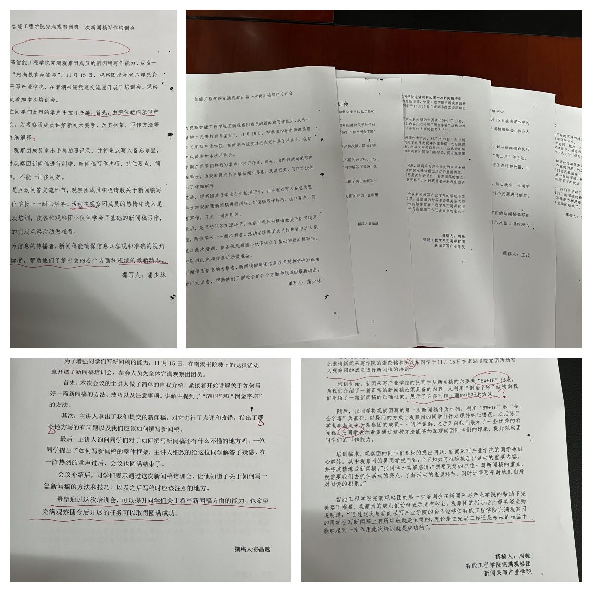 以讲促学、以学促思、以思促干,为了提升智能工程学院POWER完满观察团全体团员新闻稿撰写技能,成为一名合格的“品鉴师”,观察团团长周驰特此邀请新闻采写产业学院的张苡铭学长和陈汗东同学,于11月22日在南湖书院党团活动室为观察团成员进行专项培训。