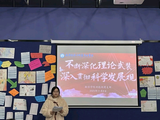 为了提升学生会的自身建设,提高学校学生会组织机构工作人员的示范带动作用,数字经济与信息管理学院学生会功能性团支部于2023年11月8日在綦河书院两句·演讲培训室举行了“不断深化理论武装,深入贯彻科学发展观”专题学习。