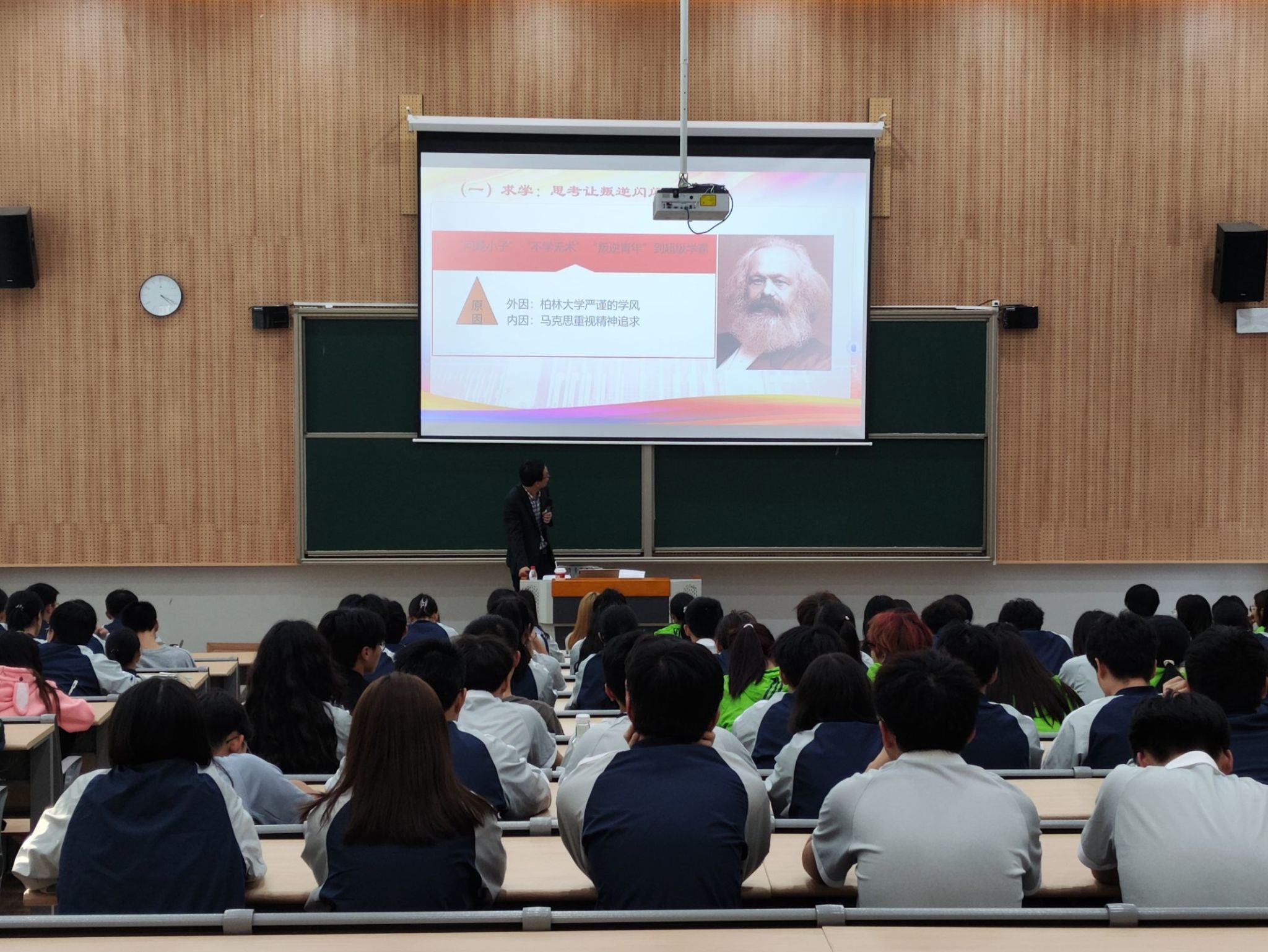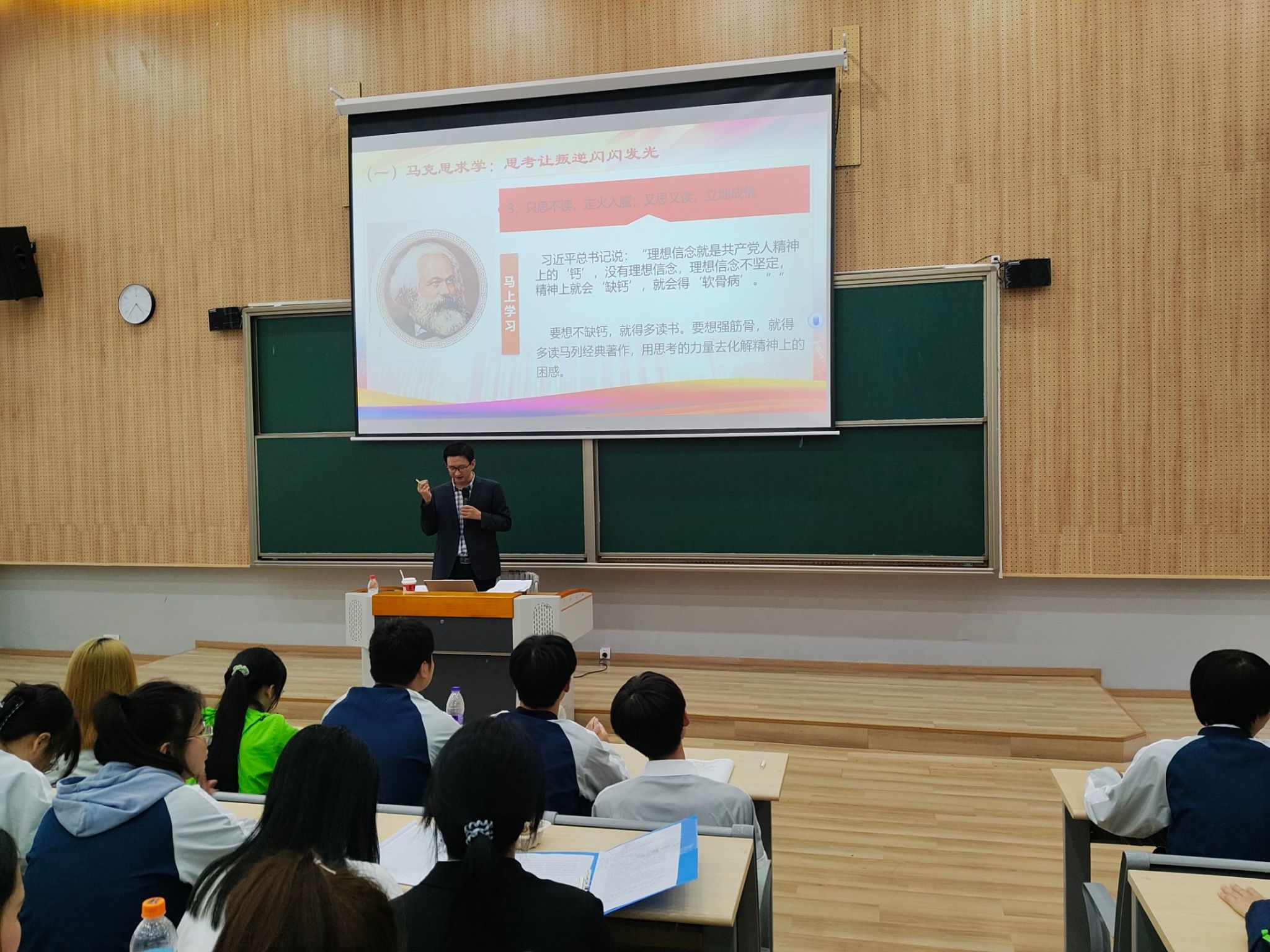 陶辉教授以诙谐易懂的方式讲解马克思的奋斗历程和思想,同学们全神贯注,并对马克思经历的磨难与挫折、坚定信仰和思想影响产生浓厚兴趣。教授引导同学们了解马克思的世界,见证他在朋友帮助下不断进步、持续创新、深化对无产阶级意义的理解。同学们以马克思为榜样,坚定信仰,勇敢面对困难与挑战,为实现人生目标而努力奋斗。同学们对马克思及其思想有更深入了解。