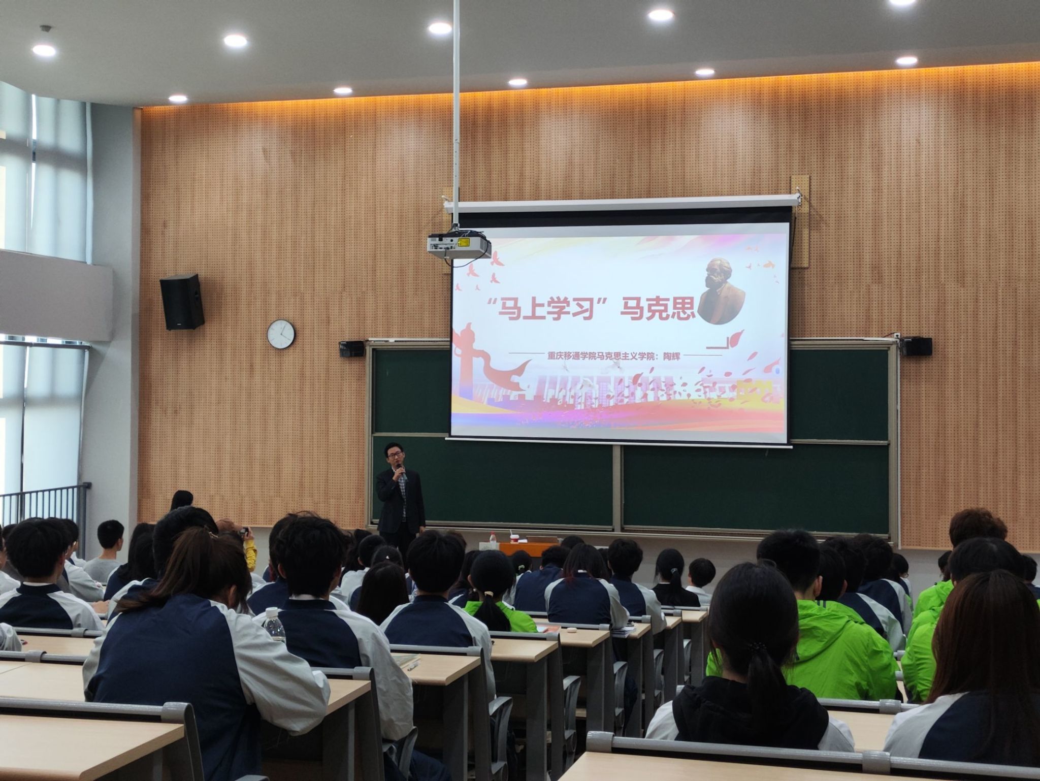 为了深入学习马克思主义思想。11月1日下午,计算机学院、通信与信息工程学院“青马工程”初阶班在横山书院阶梯教室成功举办了《“马上学习”马克思》理论课第一讲,我们有幸邀请到了马克思主义学院的陶辉副教授,他以严谨、稳重、理性、官方的语言风格讲解了马克思主义的相关内容。