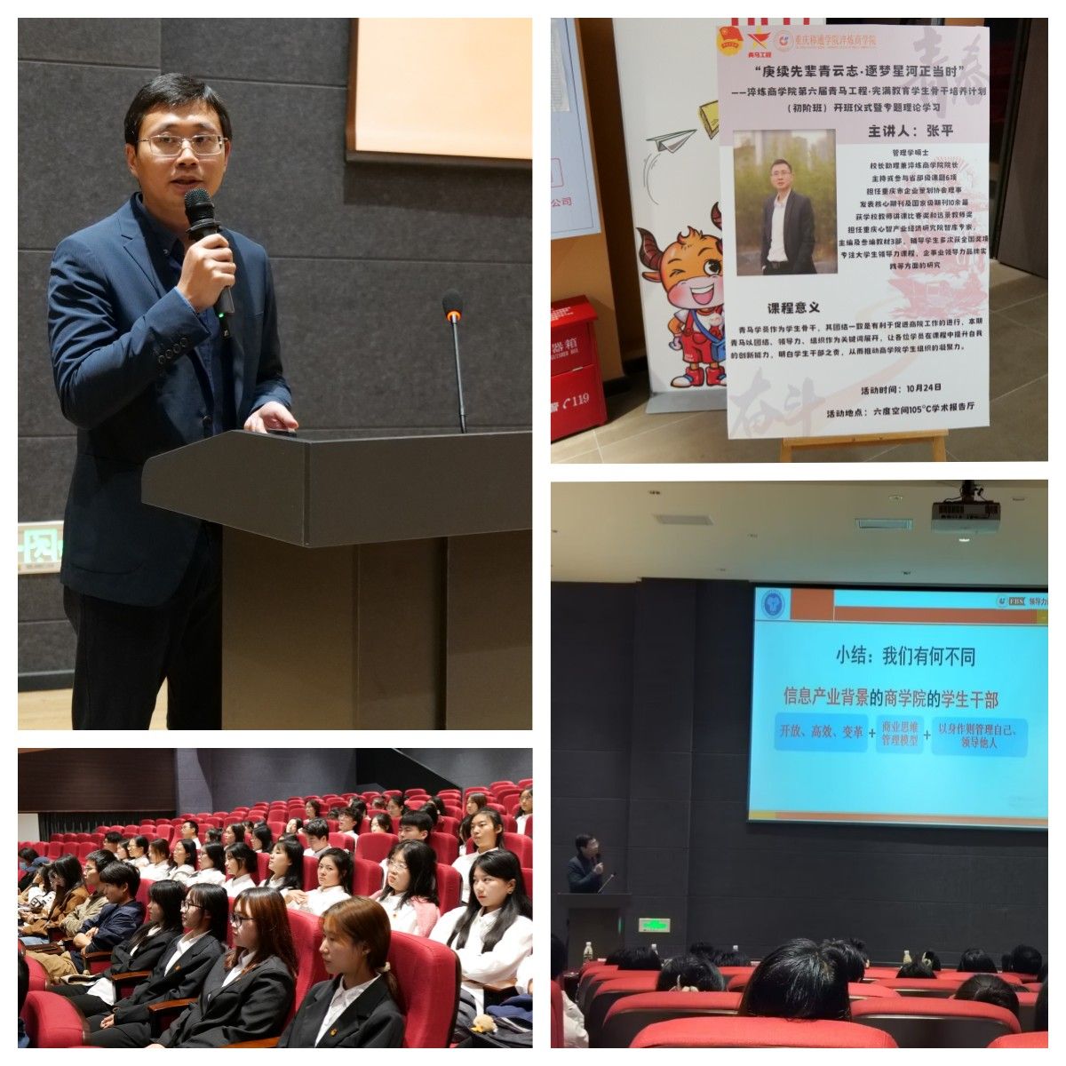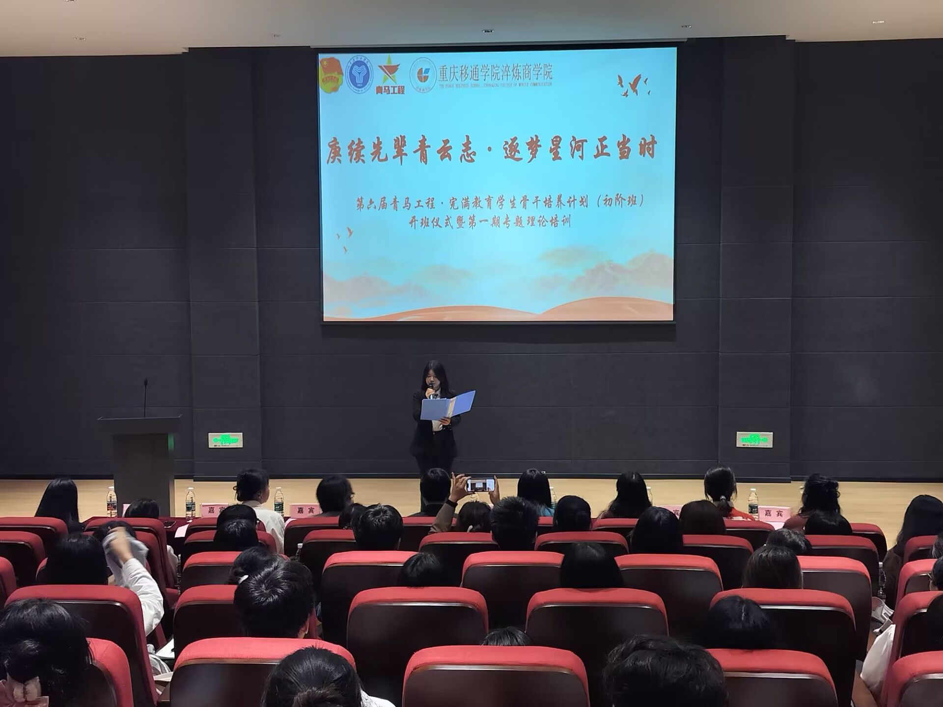 风好正是扬帆时,不待扬鞭自奋蹄。青马者是清晨的朝阳,以不惧展示青年勇气,以不退彰显青年担当。为增强青马学员的凝聚力,促进商学院的蓬勃发展,淬炼商学院团总支于2023年10月24日在六度空间105°C学术报告厅开展以“庚续先辈青云志·逐梦星河正当时”为主题的青马工程·完满教育学生骨干培养计划(初阶班)开班仪式暨专题理论学习。