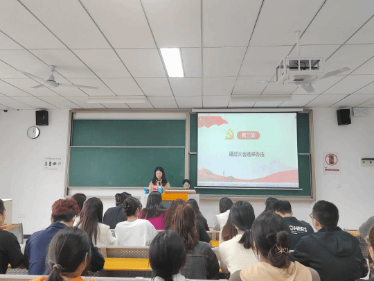 紧接着,全体同志起立,齐唱国歌。大会在阙小梅同志的组织下,全票通过了党支部选举办法。根据无记名投票和差额选举的实施办法,全体党员对支部委员会委员候选人进行了无记名投票,最终选举产生了第一届大数据学院学生党支部委员。随后,支部委员会按照党章和选举流程最终选举出阙小梅同志担任支部书记,雷淑娟同志为支部副书记,兰宇同志为组织委员兼青年委员,李进同志为纪检委员兼统战委员,蔡娜同志为宣传委员。