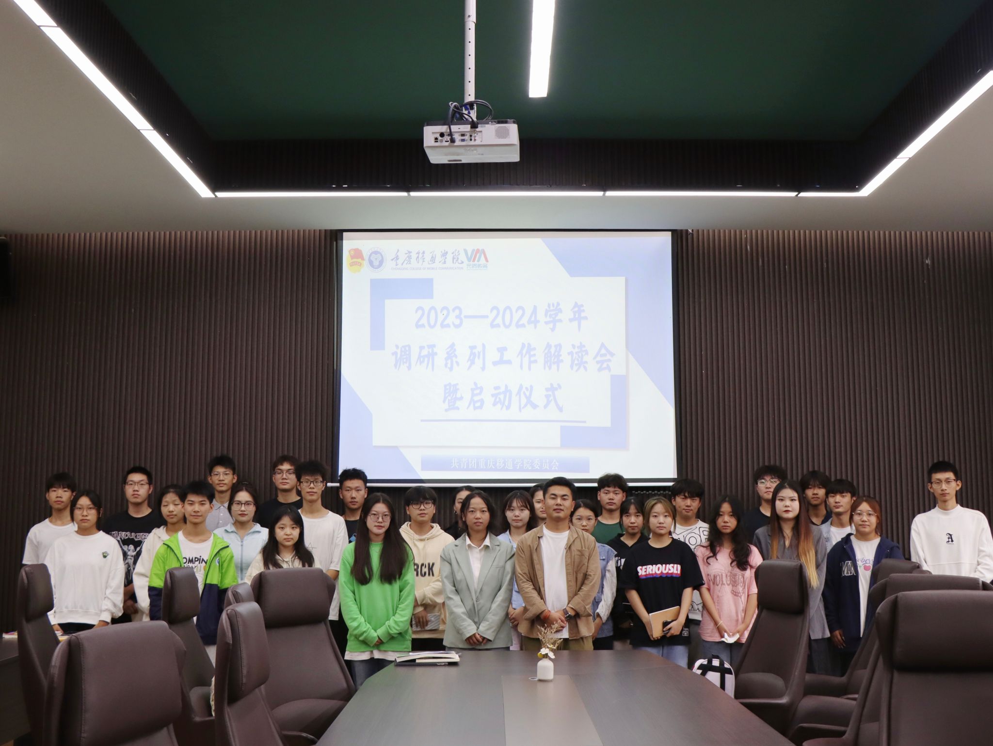 在重庆移通学院綦江校区完满教育的指引下,为扩大完满教育的影响力,提高我校的基层活力,将完满教育质量纵深推进并挖掘校园各类优秀榜样,同时,为了更好地开展2023-2024学年的调研系列工作,形成长久有效,稳定发展的调研反馈机制,于2023年9月26日,团委调研部在横山书院的九思▪会议室牵头举办2022-2023学年调研系列工作解读会暨启动仪式,参与本次大会的有团委指导老师孙林悦老师,后玉良老师以及各调研职能部门学生负责人。