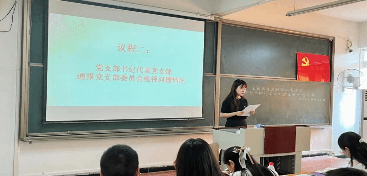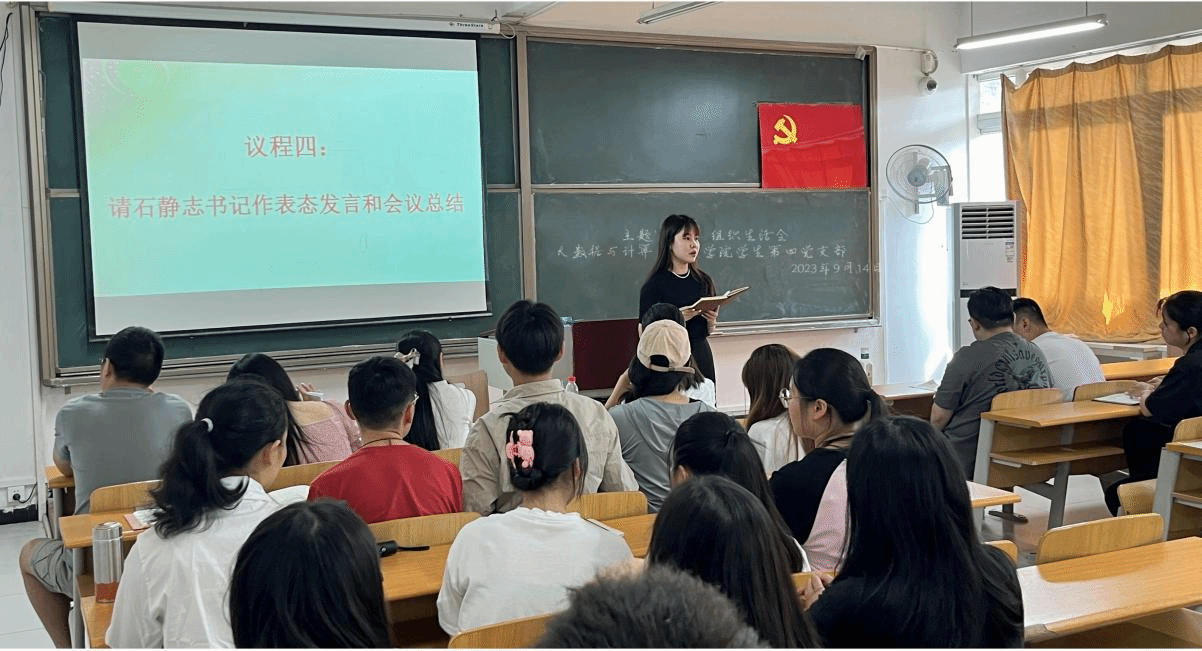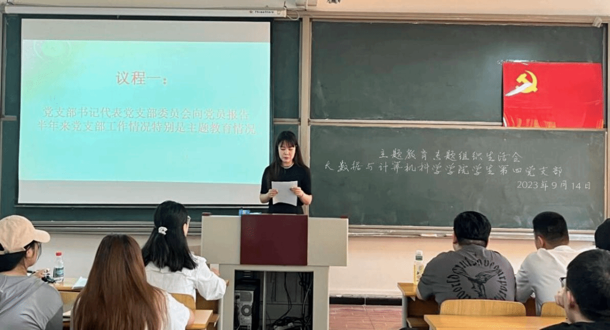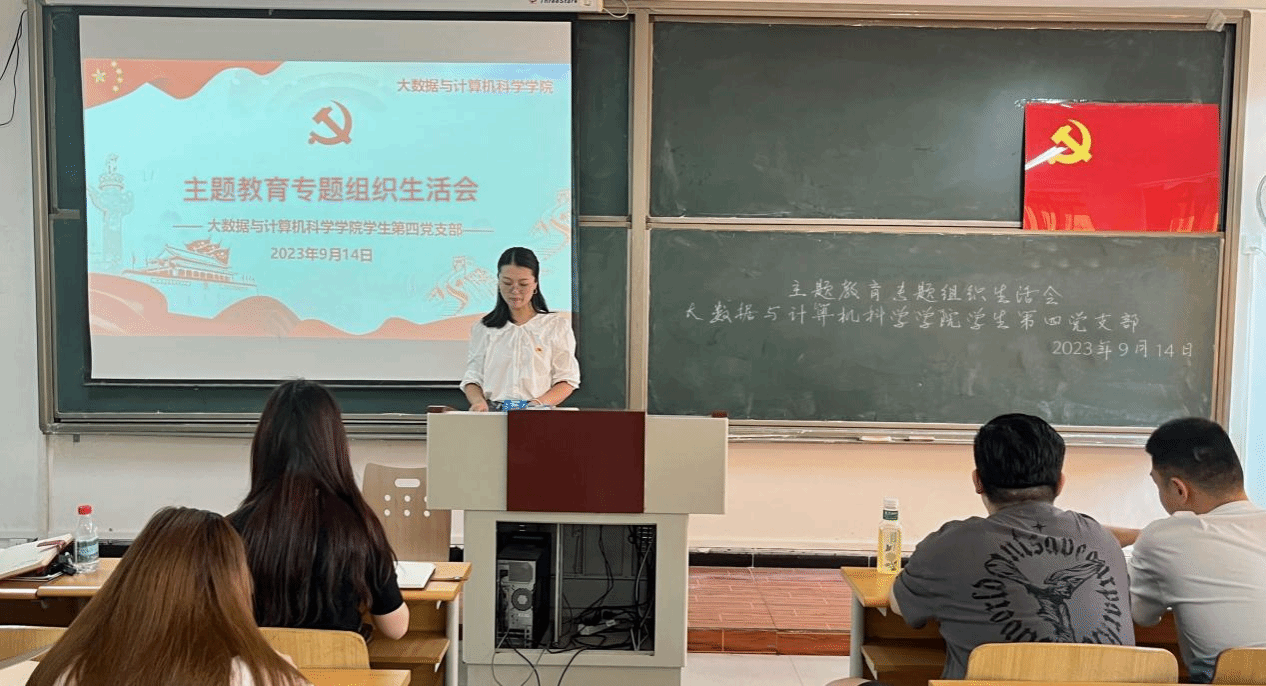 为深入学习习近平总书记关于开展主题教育的重要讲话和重要指示批示精神,对照检查理论学习、政治素质、能力本领、担当作为、工作作风、廉洁自律等6个方面突出问题,贯彻落实学习习近平总书记关于以学铸魂、以学增智、以学正风、以学促干的12条具体要求,大数据与计算机科学学院学生第四党支部于2023年9月14日上午,在第七教学楼7307教室召开了学习贯彻习近平新时代中国特色社会主义思想主题教育专题组织生活会。会议的列席人员包括学生第四党支部石静志同志在内的正式党员共45人,预备党员10人,会议由支部委员冉璐同志主持。