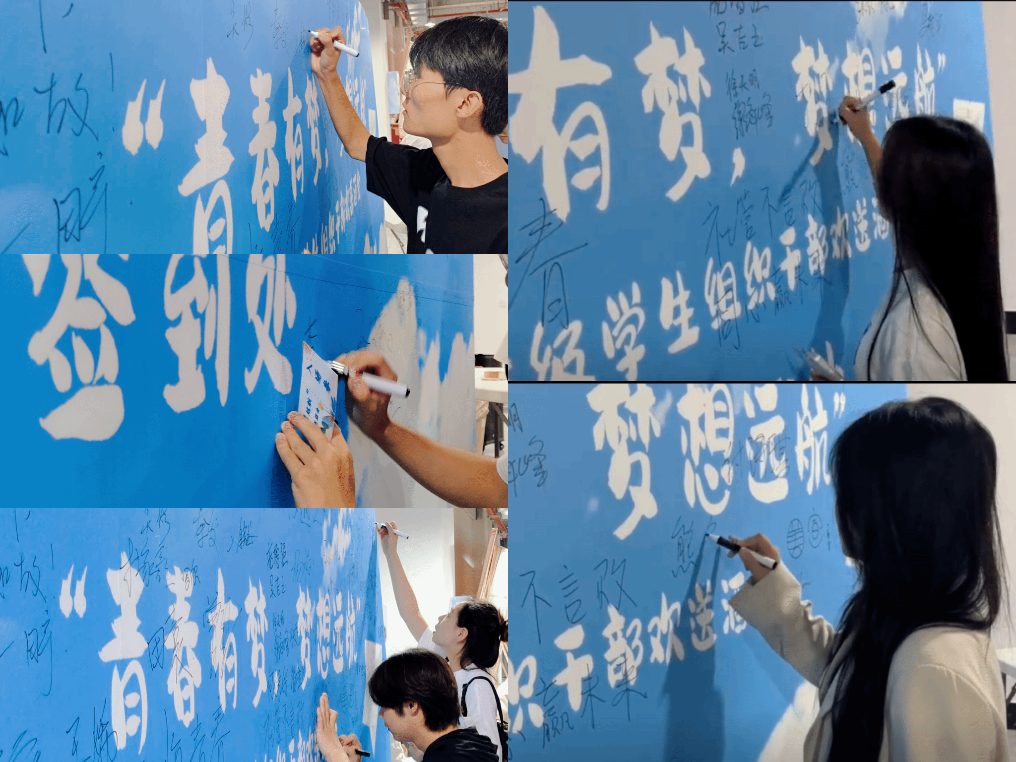 小小的签到墙里藏着小小的心愿,大大的墙上藏着无数个美好的憧憬与祝福。一个特殊的签到墙,每一位学生骨干都在签到墙上写下了对过去的回忆和对未来的期许。聚是一团火,每一个小小的文字在墙上汇集像每一位学生骨干在校级学生组织汇聚,让完满教育学生工作熠熠生辉。“青春有梦 梦想远航”八个大字不仅仅是简单的活动主题,更是对每一个完满教育学生骨干美好的期许,带着曾经美好的回忆今后在各个领域发光发热。
