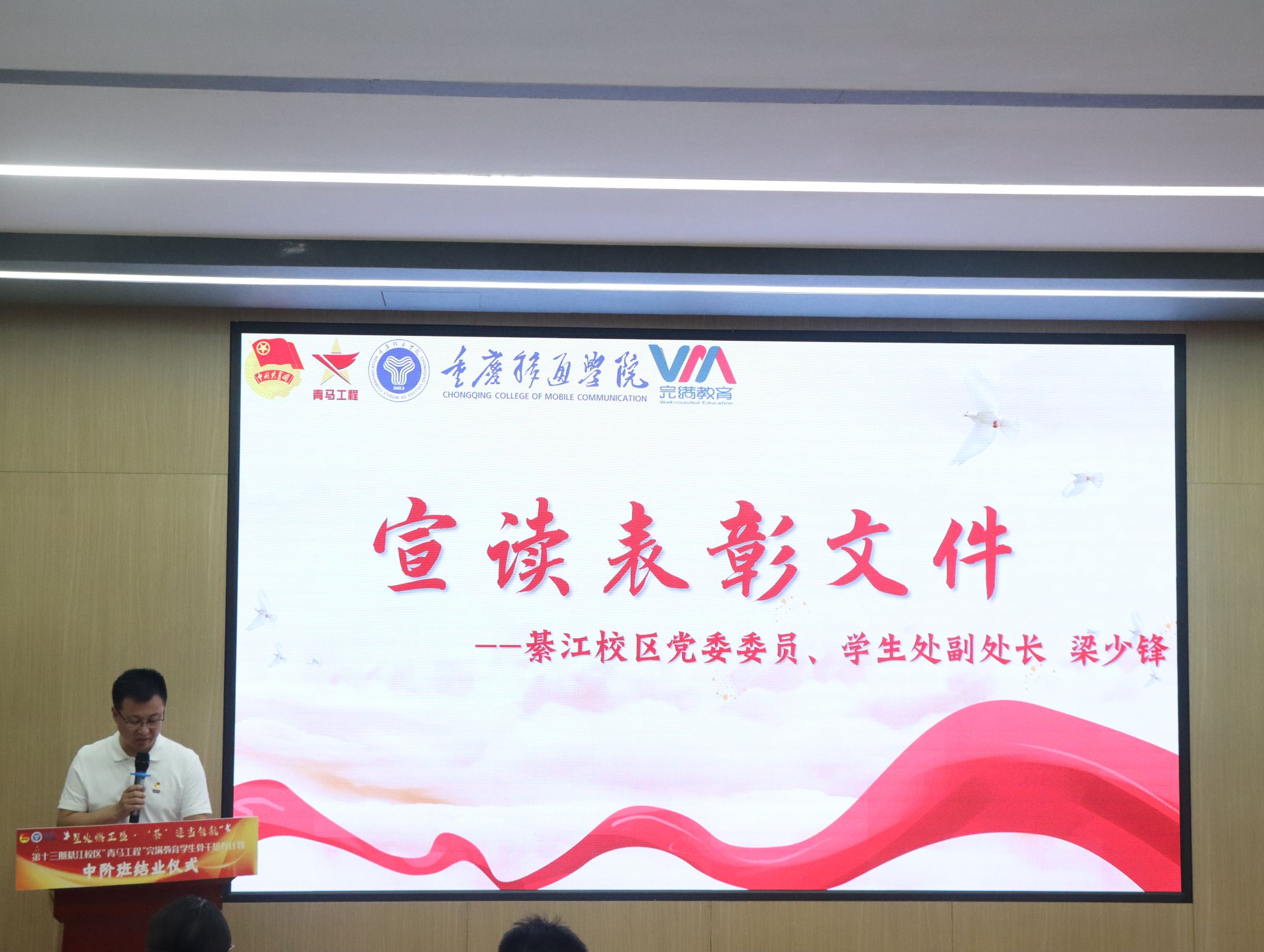 随后,为表彰先进,树立典型,进一步推动我校青马工程完满教育学生骨干培养计划工作的开展,对第十三期綦江校区青马工程完满教育学生骨干培养计划涌现的先进集体和个人予以表彰,綦江校区党委委员、学生处副处长梁少锋老师宣读表彰文件。