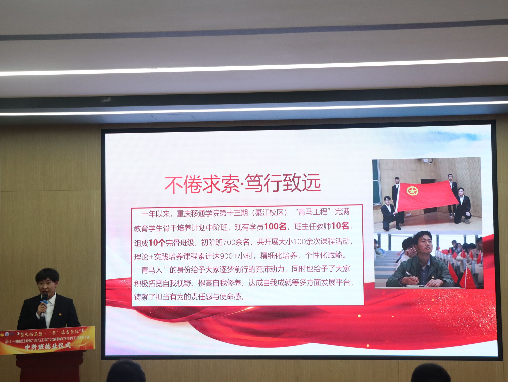 6月16日,第十三期綦江校区“青马工程”完满教育学生骨干培养计划中阶班结业仪式于智者楼304·智者讲堂正式举行。