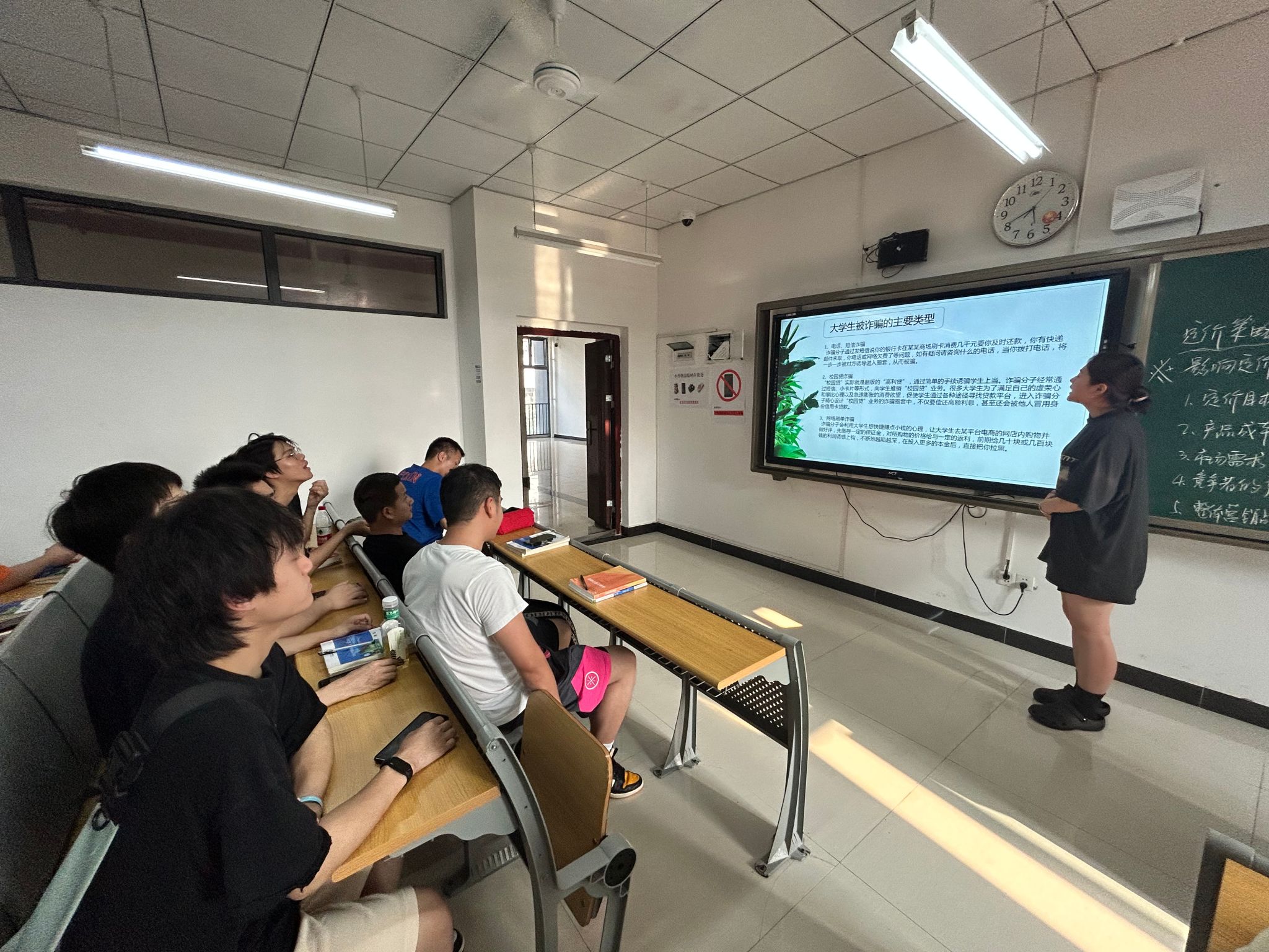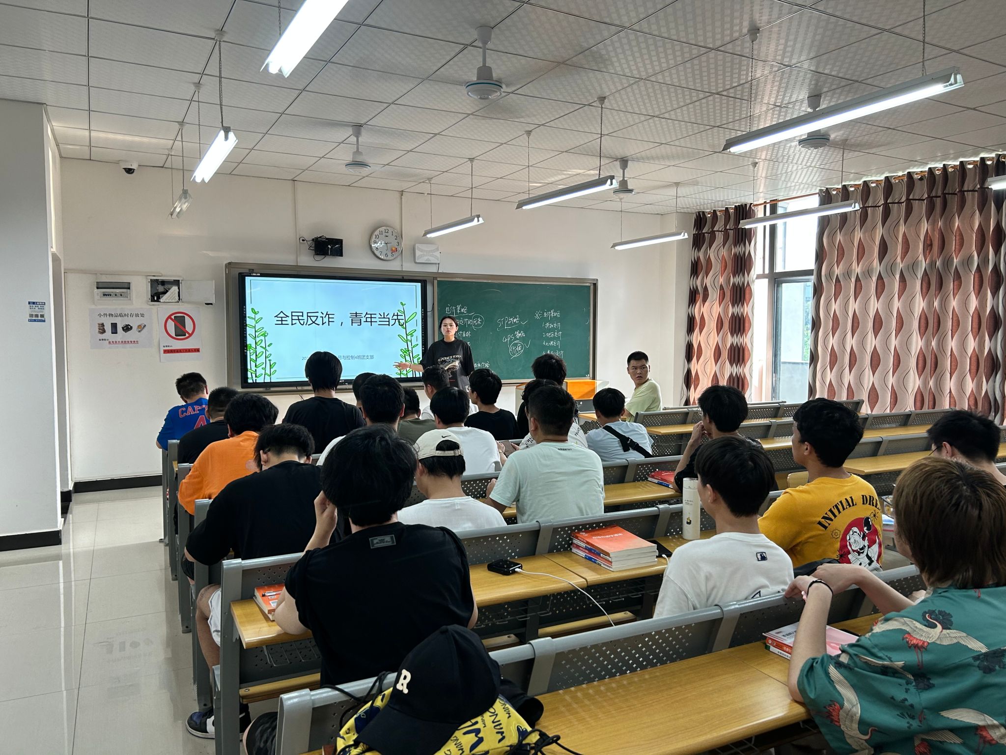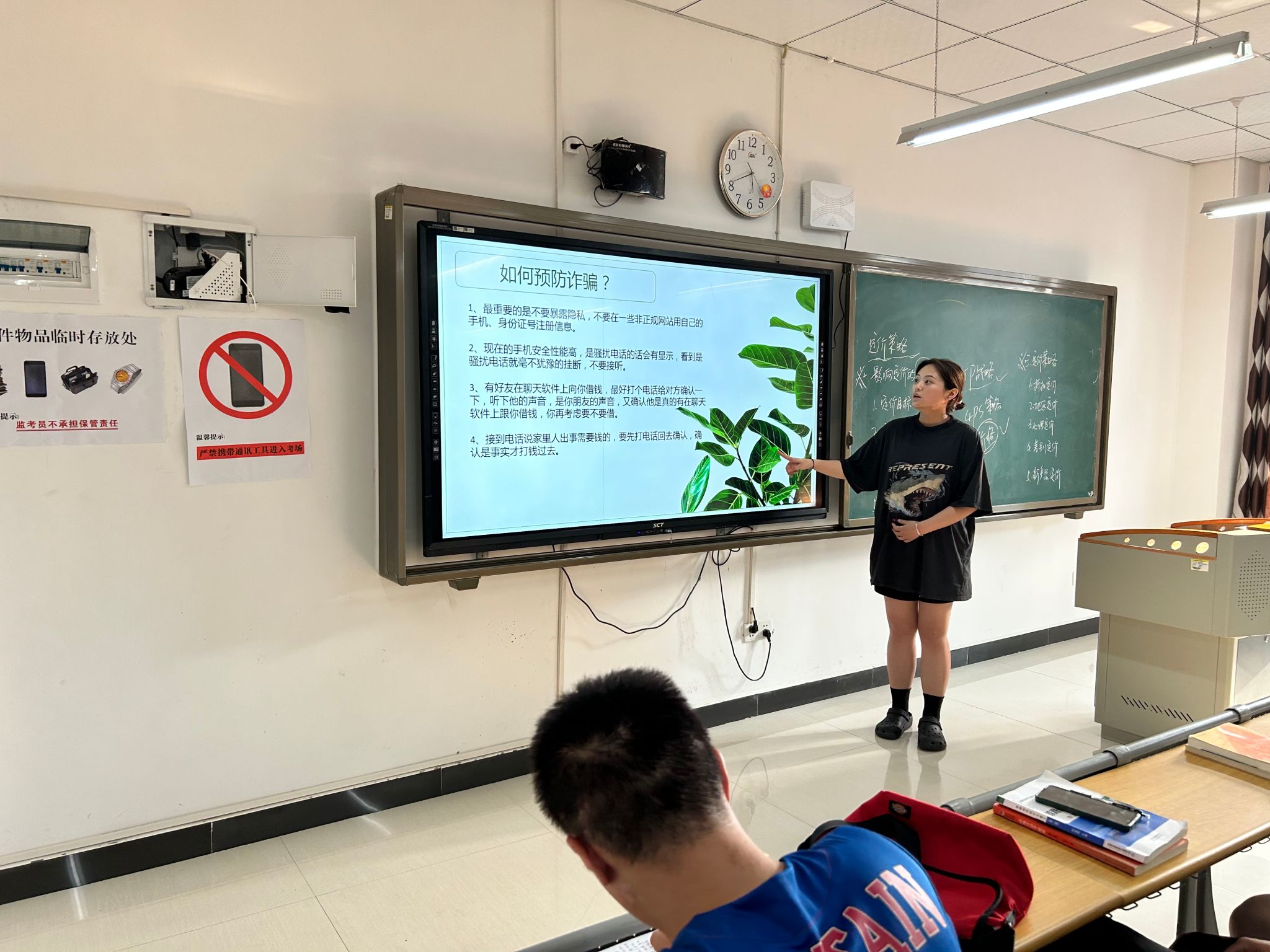 在团支书和班委的组织下,同学们尽然有序的进入了教室并陆续坐下,在全体同学们的积极参与下本次主题活动顺利展开了。在同学们落座后,首先向同学们展示了近些年来我们生活中时常发生的诈骗案例,诈骗离我们并不遥远。并向同学们提出问题,你还了解哪些被骗案例,同学们也十分积极参与回答。