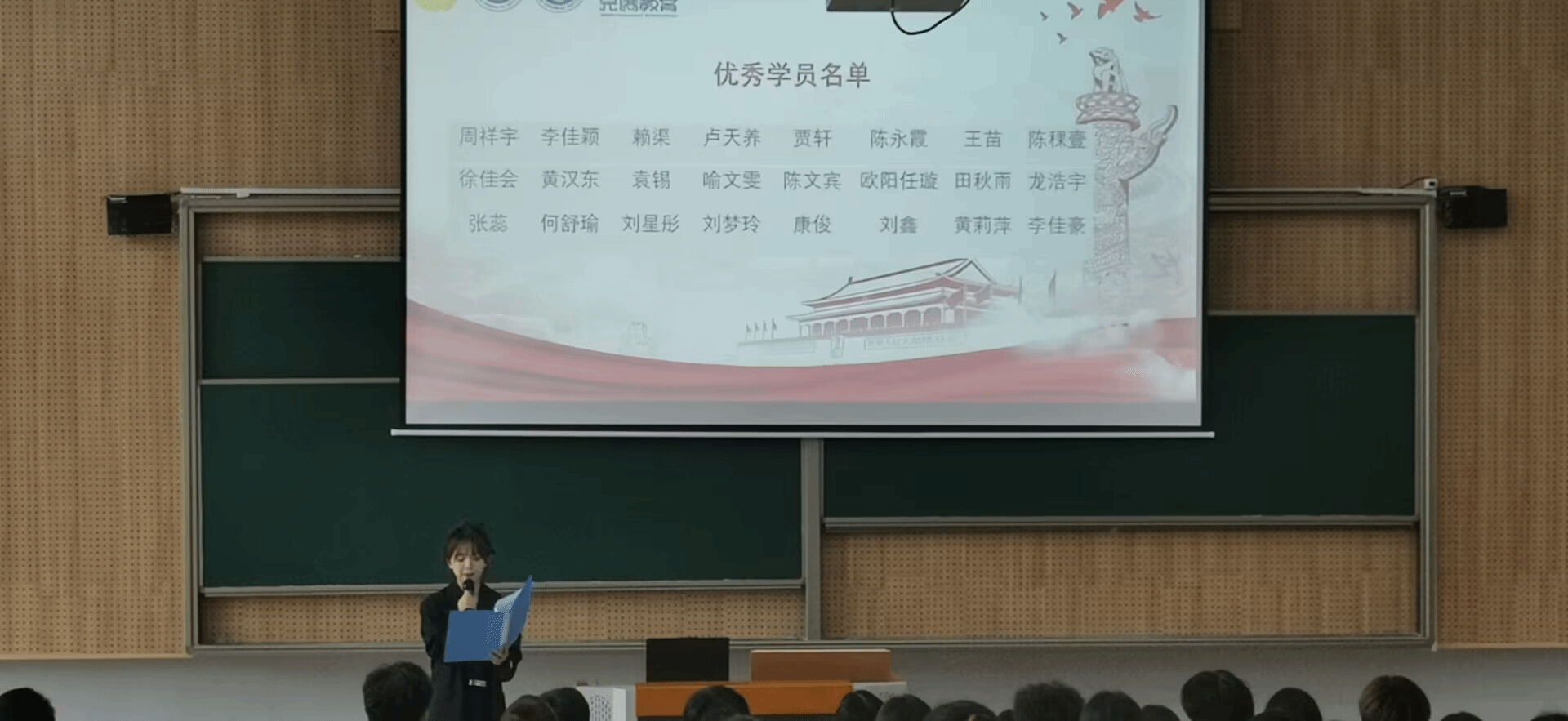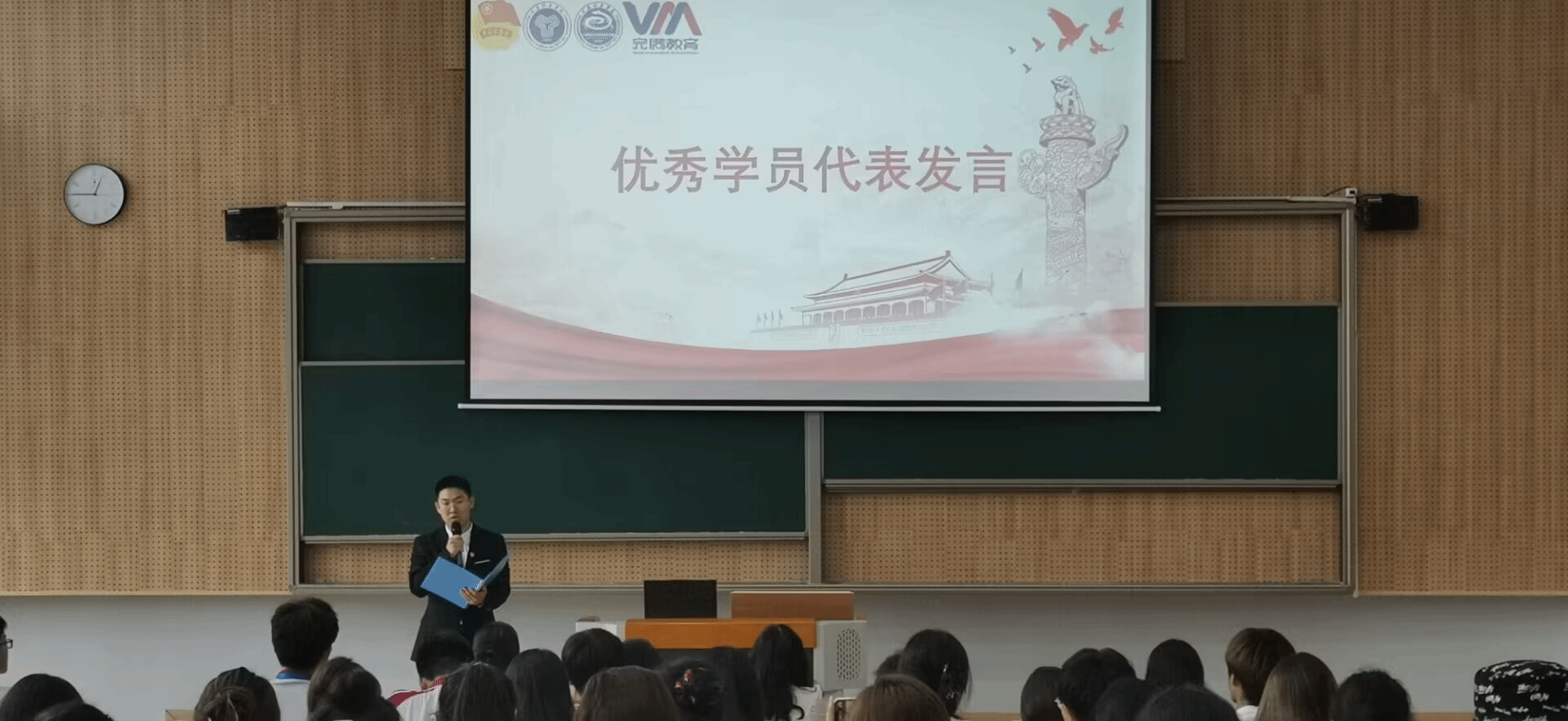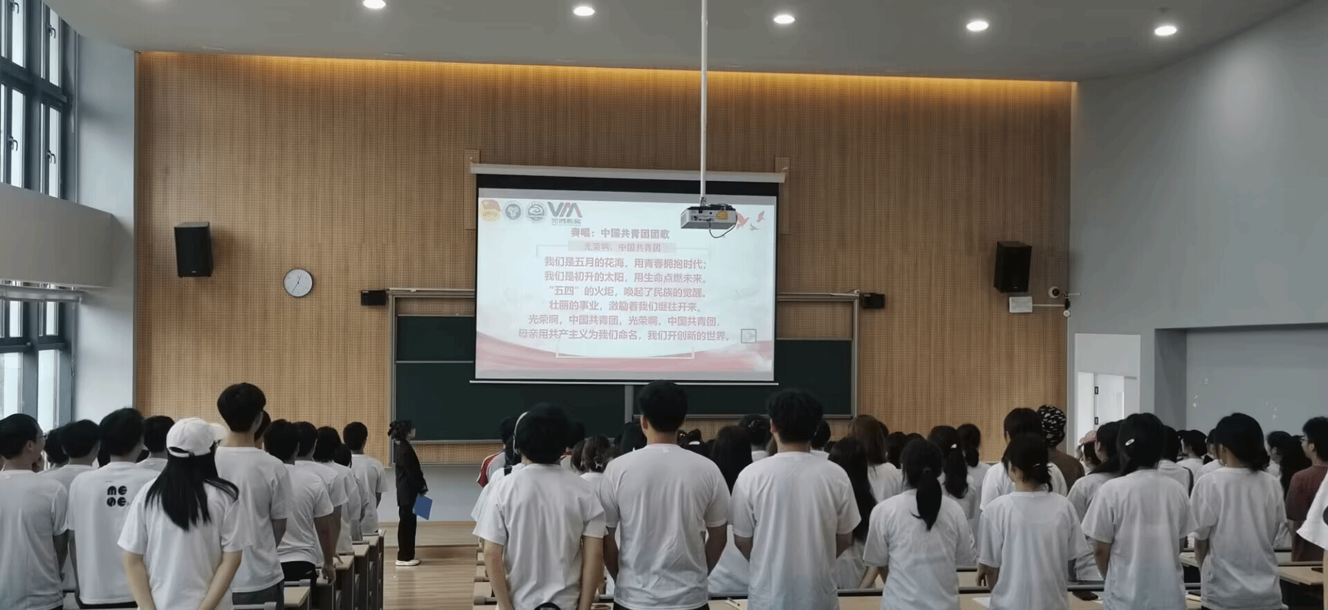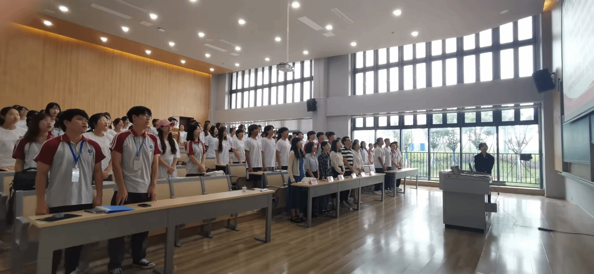 结业仪式现场,全体参会人员整齐佩戴党徽或团徽,统一着装,陆续抵达会场,按会议要求有序就座。主持人宣布大会议程后,全体起立,身姿笔直,全体齐唱团歌,仪式也在庄严宏亮的团歌中拉开了帷幕。