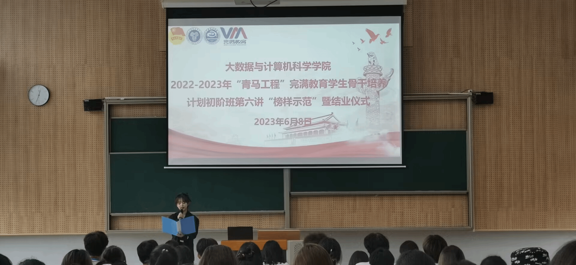 完满教育学生骨干培训旨在帮助青年学子全面、综合发展,引领青年大学生学思想、强本领、悟实践,经过一学年的系统学习,大数据与计算机科学学院2022-2023年青马工程完满教育学生骨干培训初阶班圆满完成各项学习任务,6月7日,结业仪式在横山书院阶梯教室顺利举行。团总支书记兰宇老师、学工办主任阙小梅老师,以及全体辅导员老师出席了结业仪式。
