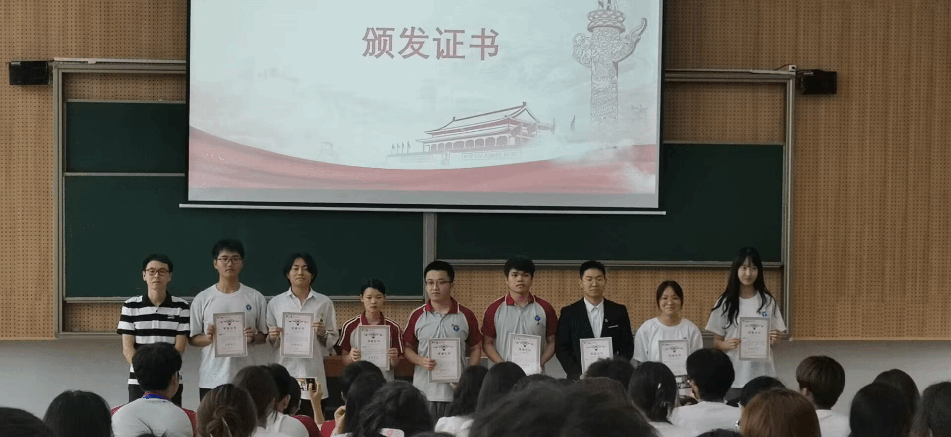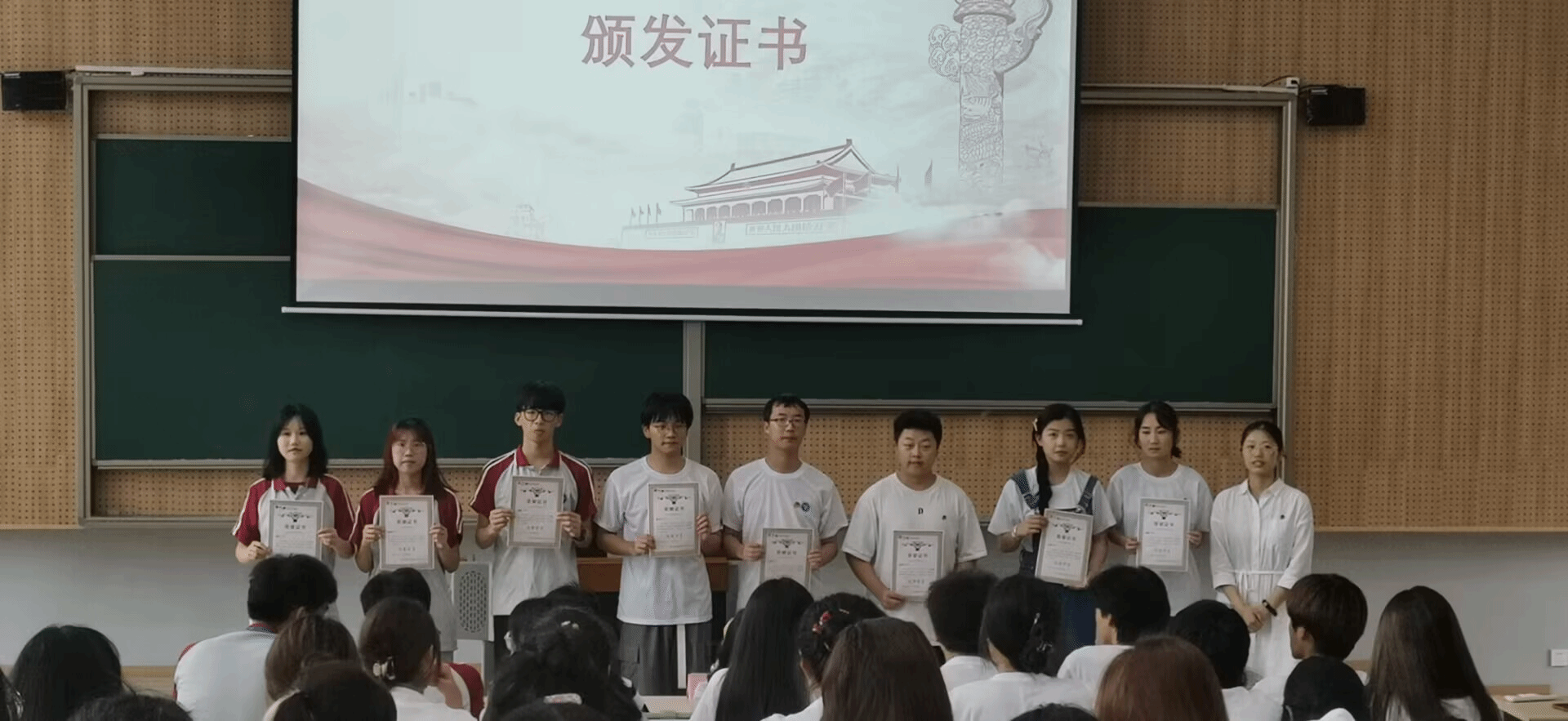 回顾完此次“青马工程”的学习历程后,主持人宣布了在初阶班中表现优异的学员名单,各位辅导员老师分别为他们颁发荣誉证书,他们在初阶班中的表现和工作,展现出了青马人奋发有为、积极向上的精神风貌,以及学有所长、多才多艺的青春风采,表达了深植在他们心中的青春之思、未来之想。