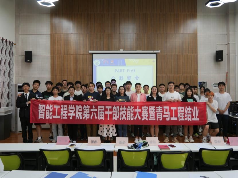 活动最后,全体成员合影留念。智能工程学院第六届干部技能大赛暨青马工程初阶班毕业仪式圆满结束。路漫漫其修远兮,吾将上下而求索。无论是干部还是青马学员都能更加枕戈待旦,不负青春,牢记使命,不忘初心,砥砺前行。在今后的工作中定能发现自我、展示自我、“完满”自我,绘出属于自己的未来。