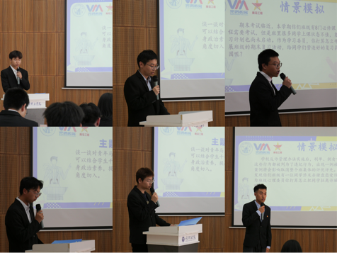 继初赛笔试后选拔出来的六名优秀选手,站在此次决赛的舞台上。本次决赛第一环节是主题演讲,选手们在讲台上结合自己的学生干部经历,接受的完满教育的锻炼,对青年马克思主义者的认识和思考这一问题,展开自己的讲述。在情境模拟环节,更是考验参赛选手们的逻辑性和在学习生活实践中的组织协调能力。