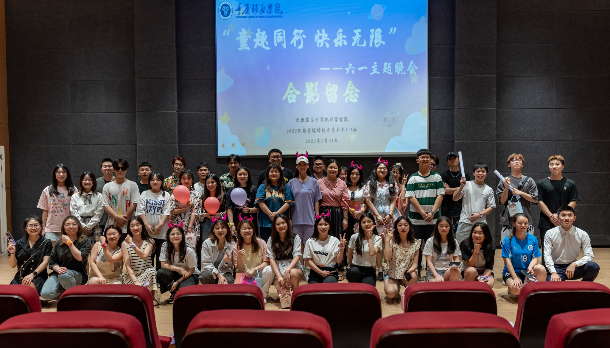 六月是童年的摇篮,是童年的故乡,是一个放飞梦想的季节。为唤醒同学们心中那份最初的纯真,激扬青春梦想,5月31日晚上19:30,大数据与计算机科学学院2022级数字媒体技术专升本1-7班在六度空间105°学术报告厅为“大儿童”们举办了“童趣同行,快乐无限”六一主题晚会。辅导员王琦老师、大数据与计算机科学学院冉璐老师、彭崇清老师,2022级数字媒体技术专升本1、2班异科生导师、通信与信息工程学院王宝珠老师,以及2022届优秀校友刘竞馨学姐出席本次晚会,在轻松快乐的氛围中找寻记忆中的童年乐趣。