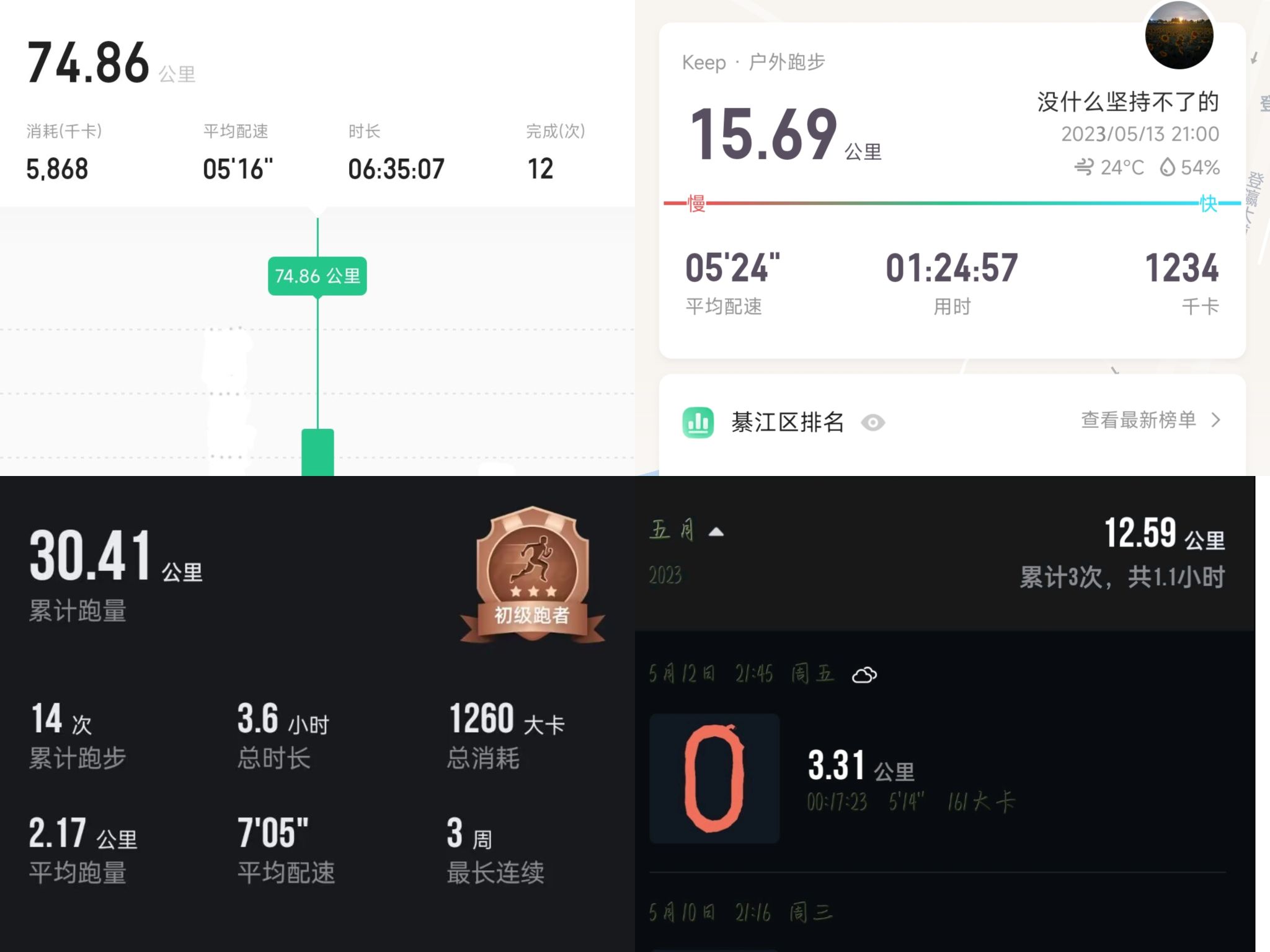 在这次活动之前,我很少会主动去运动,更多的运动时间都是在体育课上。当我看见班上在组织这个运动习惯养成活动时,我充满了兴趣。由于我没有其他的运动技能,我选择的就是跑步。我从开始的两三公里跑着气喘吁吁,累的不行。经过不断的突破自己,我跑了从来没跑过的15公里。而且跑步不断锻炼了我的身体,还能让我舒缓情绪。