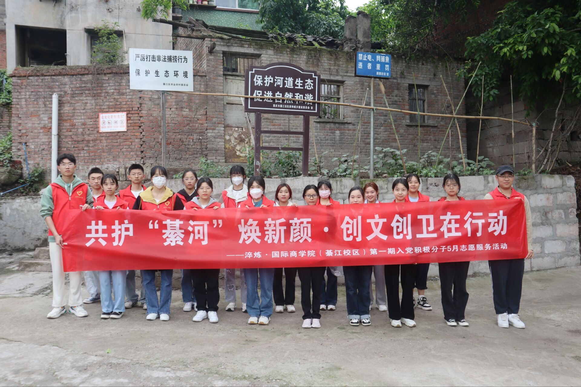 綦江,因河得名、因水而兴、因河而美。为深入学习贯彻习近平总书记生态文明思想,践行“绿水青山就是金山银山”的理念,争做綦河守卫者,为綦江城区创文创卫工作贡献绵薄之力,淬炼•国际商学院(綦江校区)第一期入党积极分子于2023年5月10日13:00,前往重庆市綦江区通惠社区河流路段开展志愿服务活动。本次活动由入党积极分子吴霁月同学带领大家与通惠社区工作人员沿着河流进行清洁工作、社会创文创卫实践普及宣讲等活动。