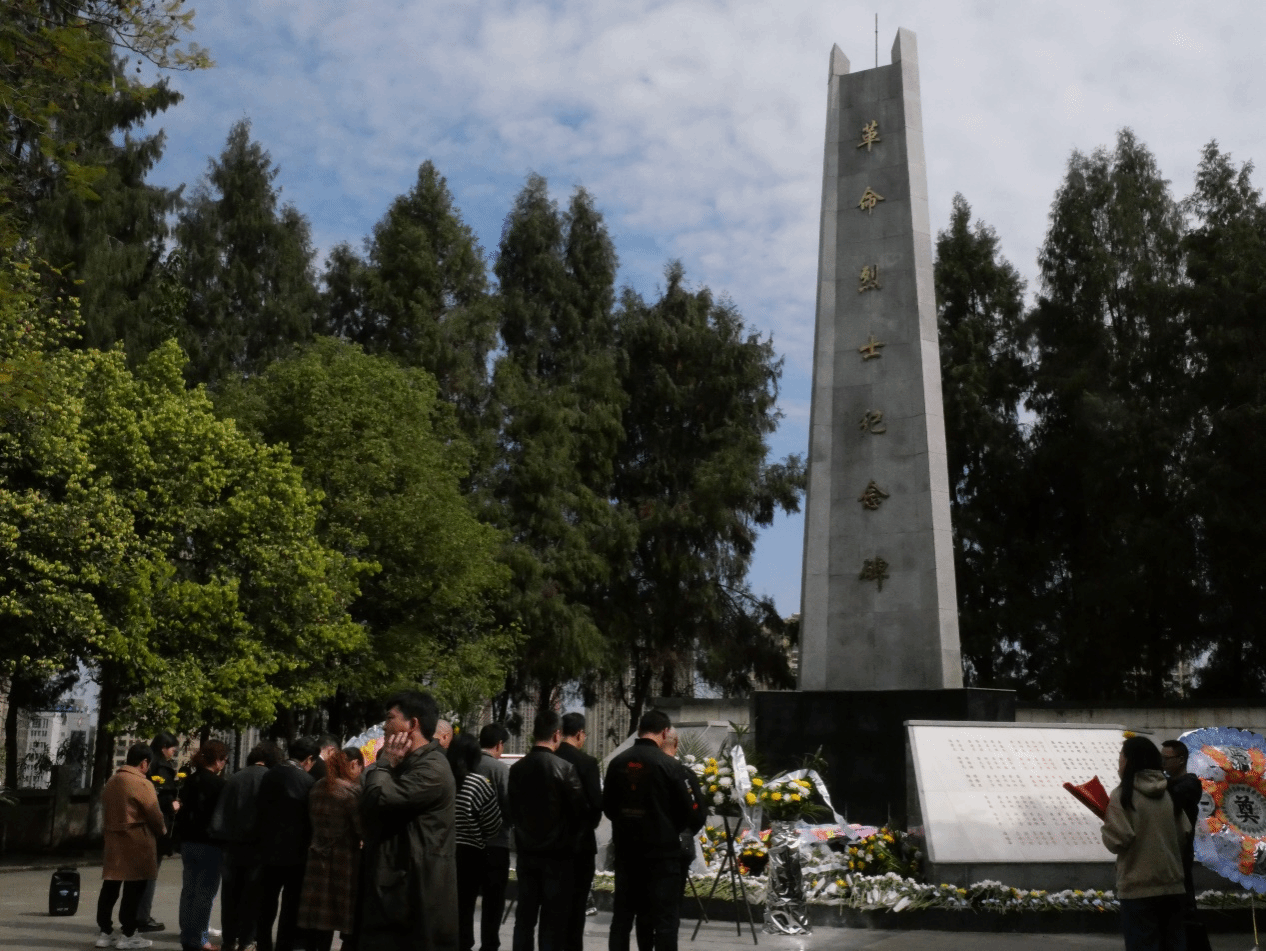 坐落于合川人民公园的烈士纪念碑,上面刻满了英雄的名字。我们到达之时,陵园已有许多自发前来祭拜的合川群众。每一个人手捧白菊,表情严肃,一一向前为我们的英雄献花,感谢他们的英勇所换来的美好生活。