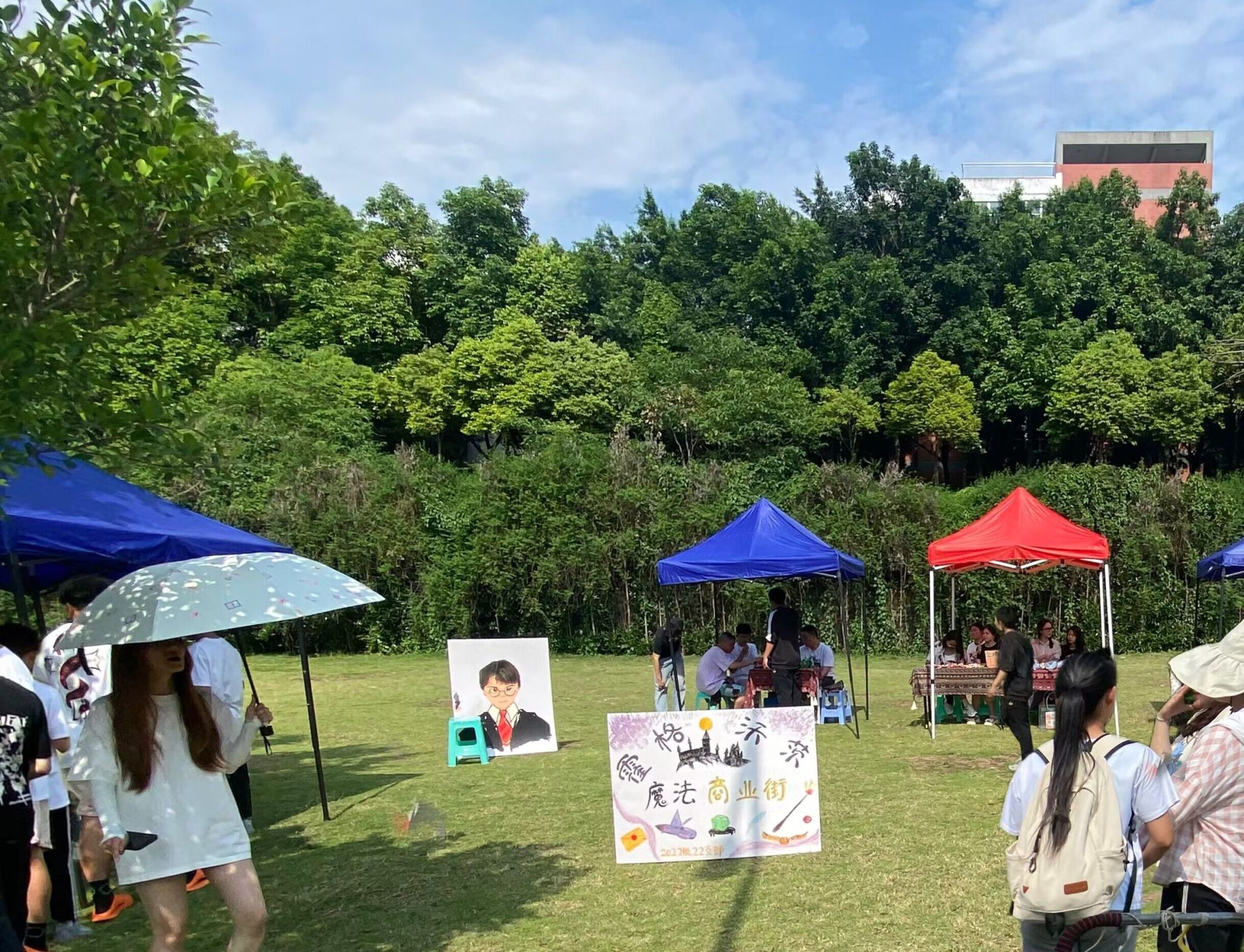 为积极响应党中央提出的“大众创业,万众创新”号召,充分发挥学校平台资源优势,鼓励大学生创新,支持大学生创业的具体措施为深化人才培养模式改革,积极响应国家关于“地摊经济”的号召,打造我校有活力、有创意的创新创业实践活动班团完超新模式,给我校青年大学生提供创业舞台、积累创业经验,淬炼·国际商学院2022级工商管理类22团支部特于5月7日下午15:30在双子湖旁开展霍格沃茨魔法商业街主题完超活动,此次活动现场共吸引了300余名同学参与其中。