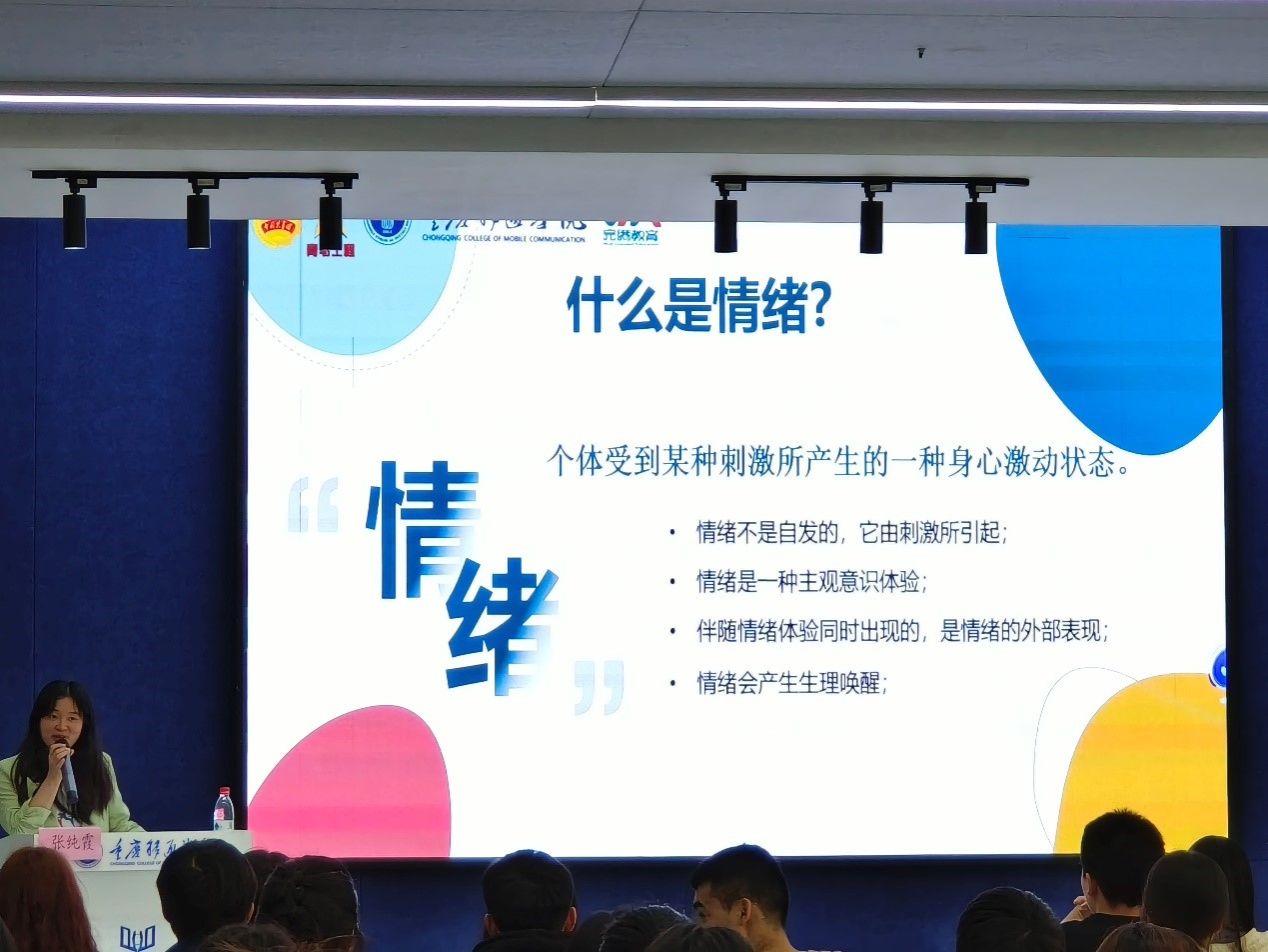 张纯霞老师向我们的同学解释道:“情绪为个体受到某种刺激所产生的一种身心激动状态。”