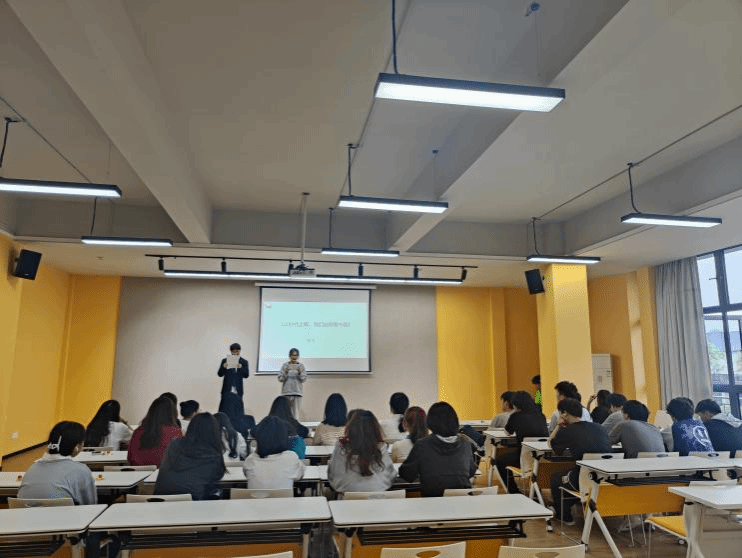红色经典能滋养人们的精神世界,让信仰永不褪色。在活跃气氛的小游戏后,团支部成员李钰璇为同学们深情演唱红色歌曲——《如愿》。余温尚存,紧接着,团支部成员周豪与余双蝶又共同为同学们带来了红色经典朗诵——《以时代之眼,我们这样看中国》。在他们的精彩演绎下,全体成员更加深刻地感受到了红色力量,增强了理想信念。
