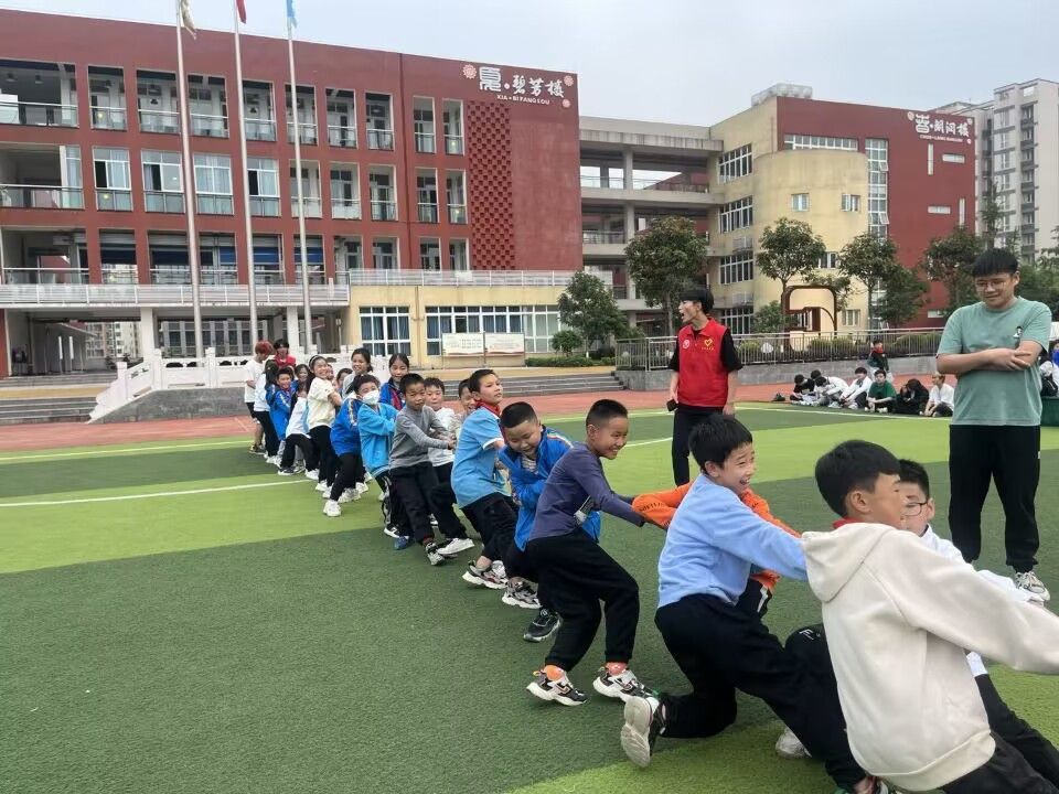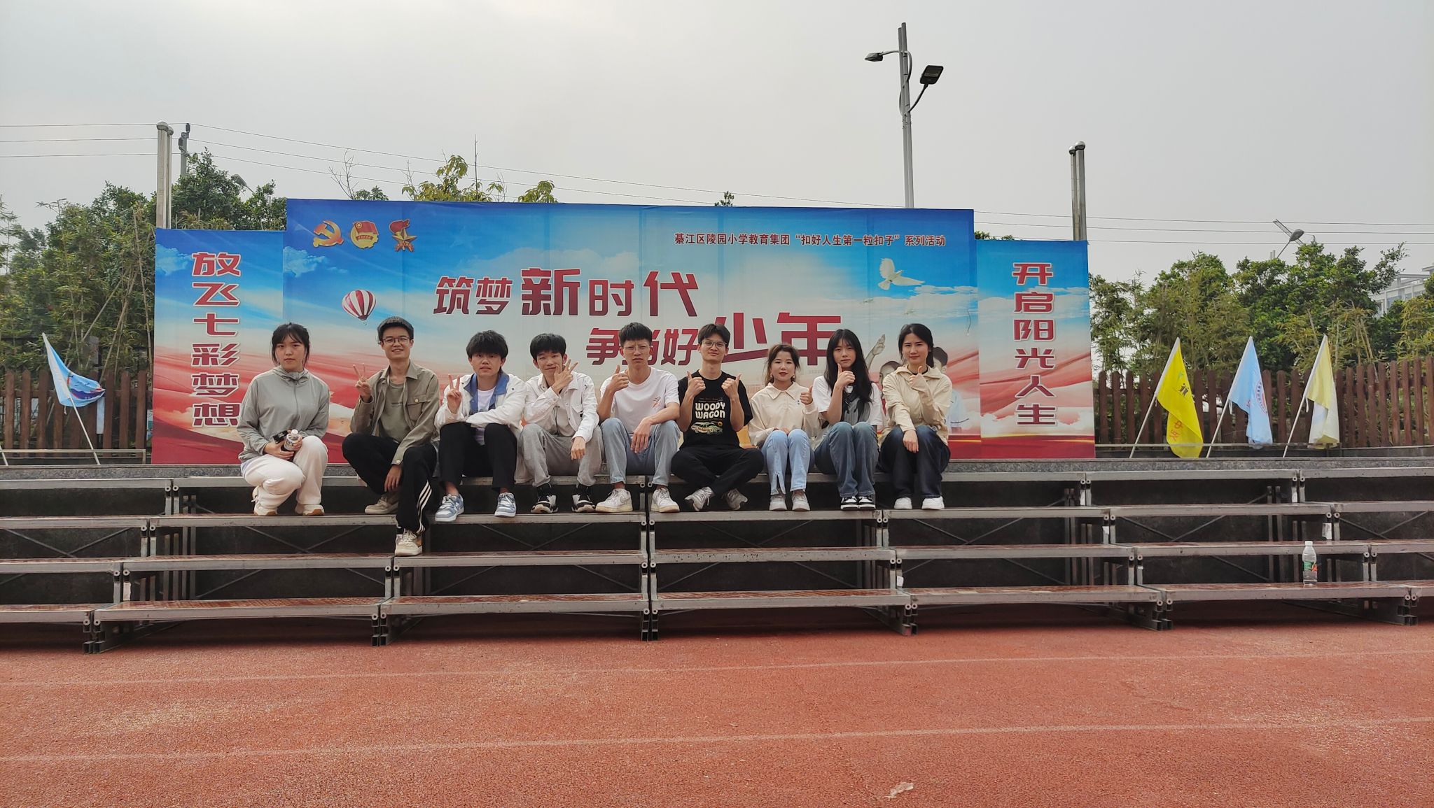 四月伊始,春意盎然。为坚持“健康第一”的科学指导思想,践行“三走”精神,走出寝室、走出网络、走向操场。以促进学生干部干事素养,加强学生骨干团队建设、榜样带头作用。青马工程中阶五班、九班的同学于2023年4月14日下午14:00在老师的指导带领下积极走出校园,与重庆市綦江区陵园小学四年级的学生们通过团队趣味活动,增强团队凝聚力和团队协作力,培养学生热爱运动的意识。