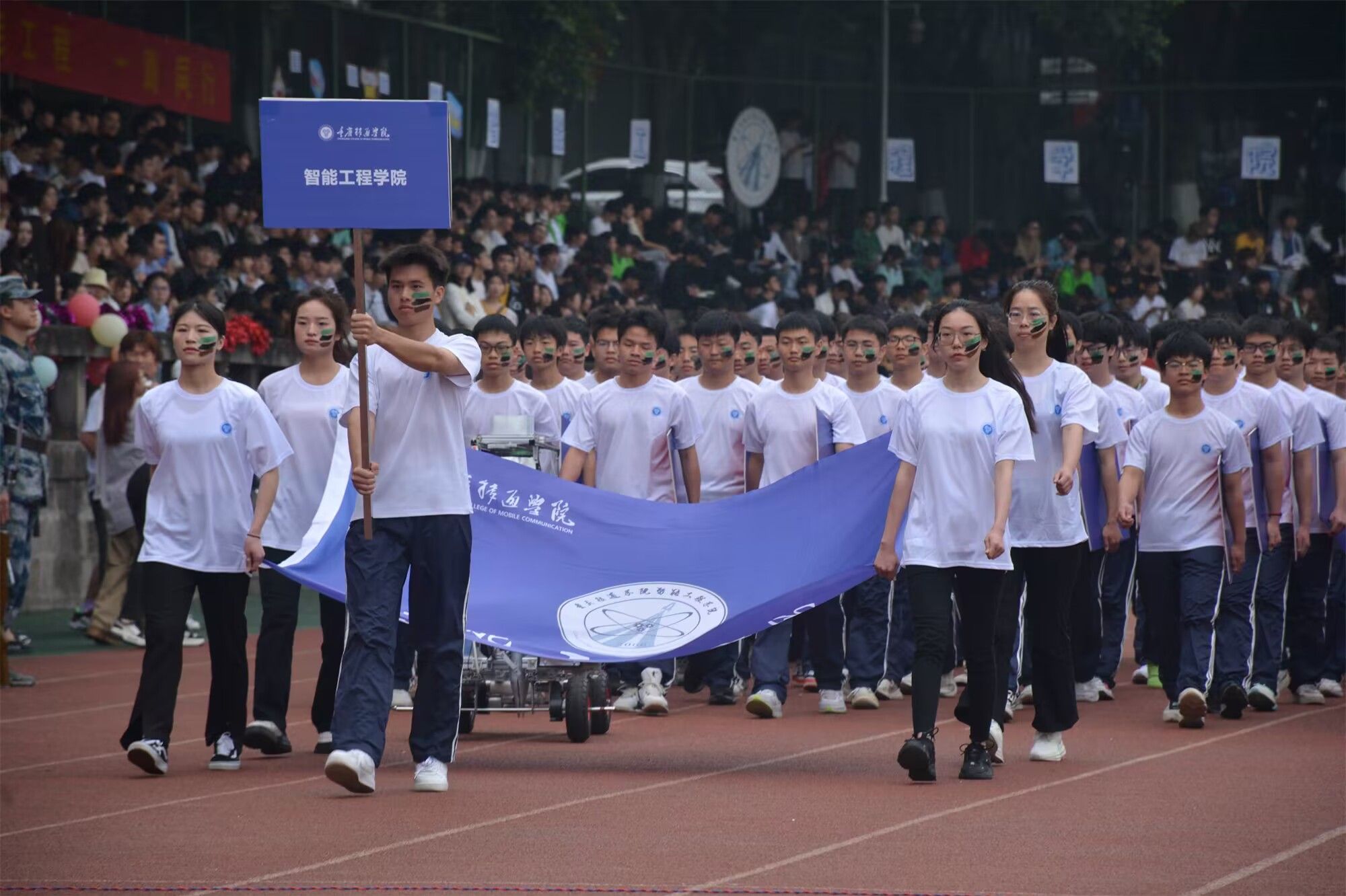 在4月13日早上八点整2022级机械类02团支部全体成员和智能工程学院体协成员全部统一好服装,在脸上涂好迷彩,站好队伍,手拿板子和自主设计创意作品以齐步方式进场。