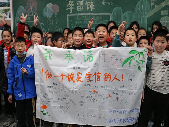 为了加强青年诚信教育,提高青年人的诚信意识和道德素养,鼓励我校青年学子从小事做起、从身边做起,并辐射社区,带动校外童稚践行青年诚信。淬炼·国际商学院2022级工商管理类23团支部携手青年志愿者协会爱暖童心小课堂志愿服务专项支队于2023年4月8日在东津沱小学开展以“诚者天道•至诚无息”为主题的完超活动。希望通过此次活动可以积极引导少年儿童树立正确的价值观和行为规范,培养诚实守信的良好品德,以加强教育为基本点,培固诚信文化之根。