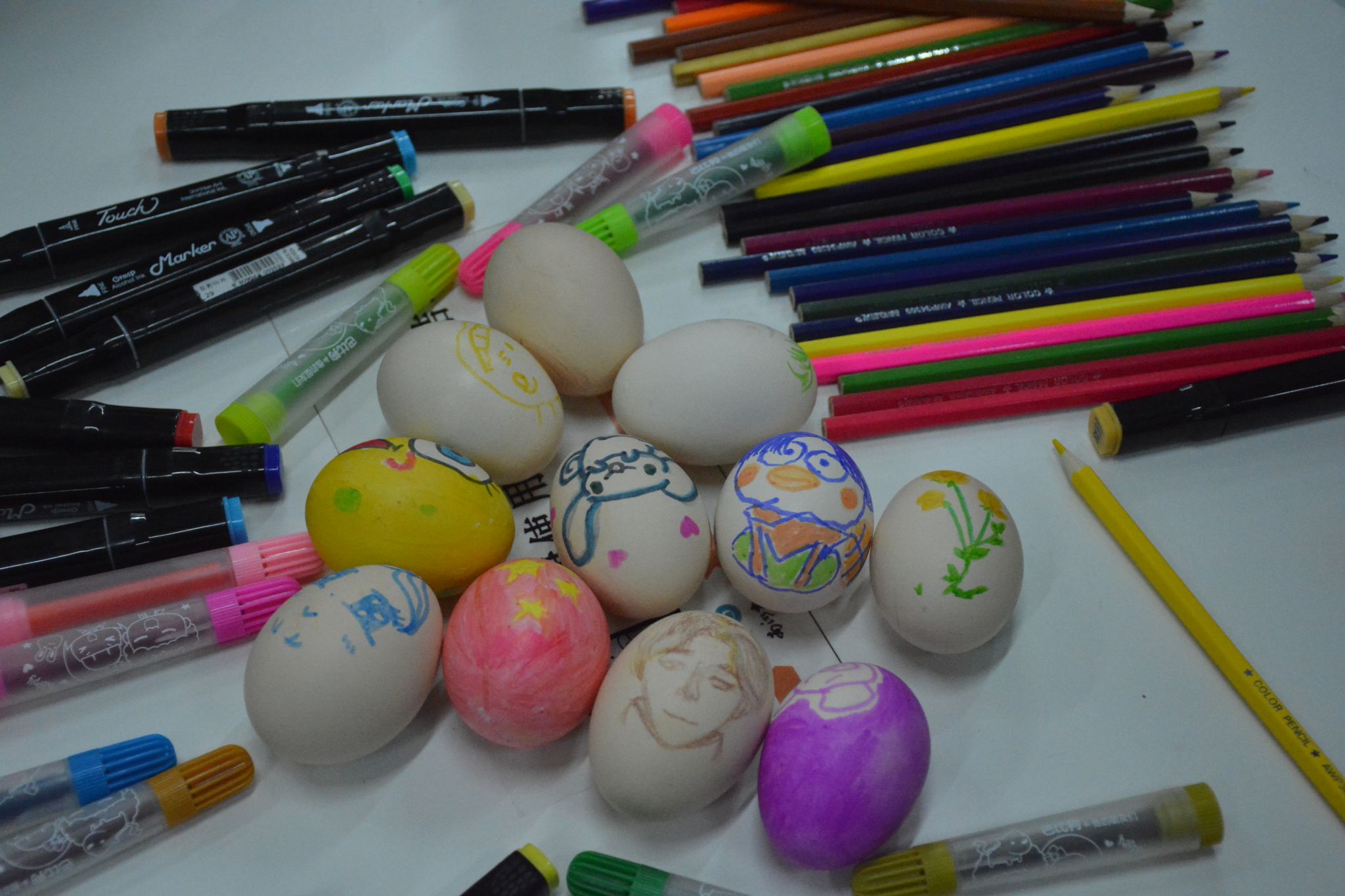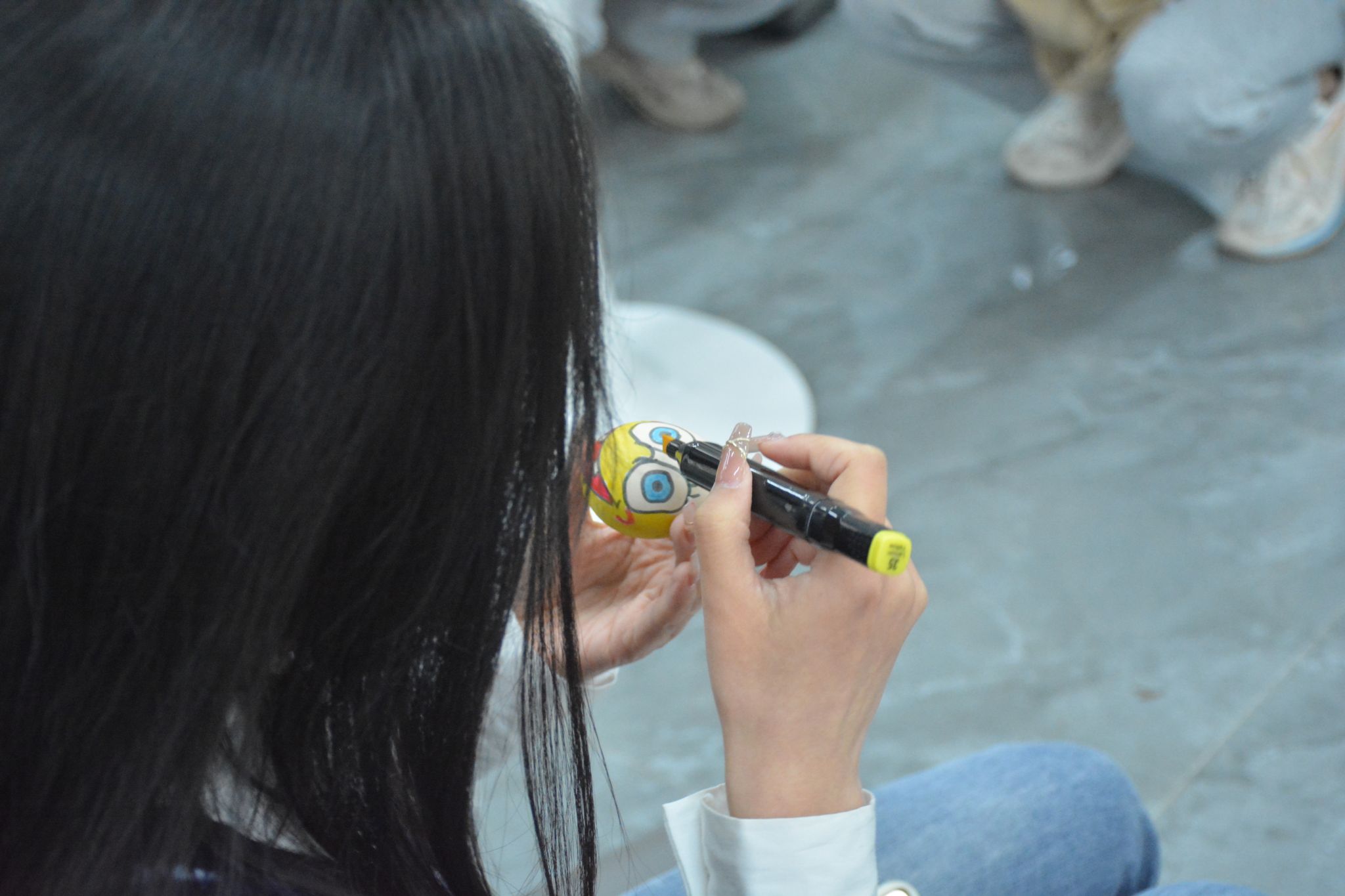 接下来,同学们分成小组,每组领取一些颜料、刷子、贴纸等材料,开始了自己的创作。有的同学用颜料画出了五星红旗、国徽、地铁车辆等图案,有的同学用贴纸拼出了“团结”、“奋进”、“梦想”等字样,有的同学用刷子点缀了花草、动物、星空等元素。每个彩蛋都体现了同学们的独特风格和个性。同学们还互相交流了自己的艺术见解和创作灵感。
