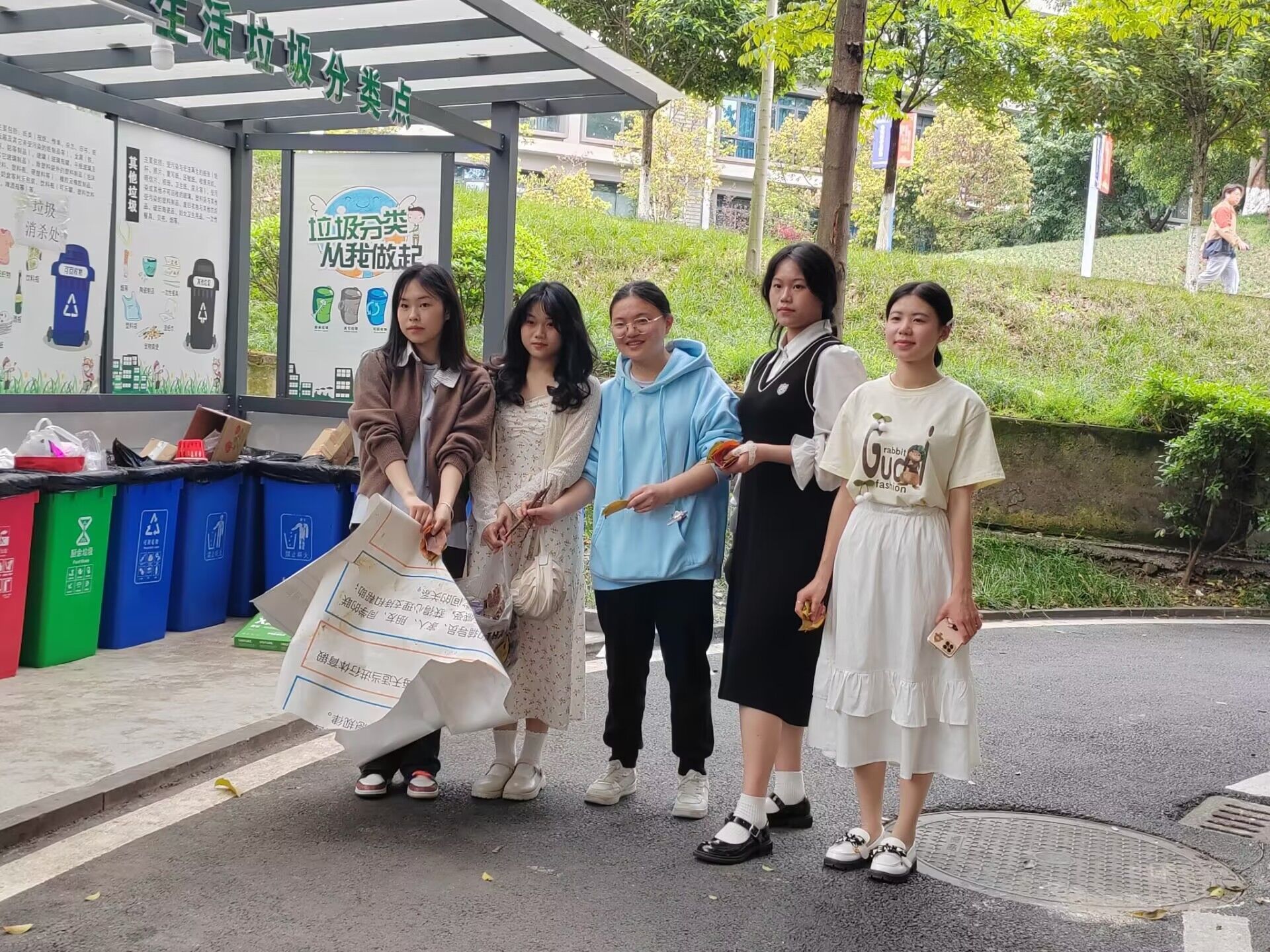 在完成第激烈的小组比拼活动之后,紧接着是集体活动环节——“一起携手,美化校园”环节,班委各自对应一个小组,到达第二个目的地——学校天渠与北山书院,同学们陆续在火辣辣的太阳下进行捡垃圾,拾落叶,清理纸屑;生活因劳动而变好,人生因劳动而充实;可以看到在此环节中同学们互相Battle,以最快的速度完成,并在规定时间内完成任务回到活动基地。虽然大家都汗如水流,但都深深体会到劳动的意义。随后,团干部对此进行总结,同学们也在便利贴上写下美好祝愿,贴在画板上。希望大家记住这份特殊的回忆,在今后能够掌握劳动技能,养成良好劳动习惯,进一步营造良好学习的氛围。