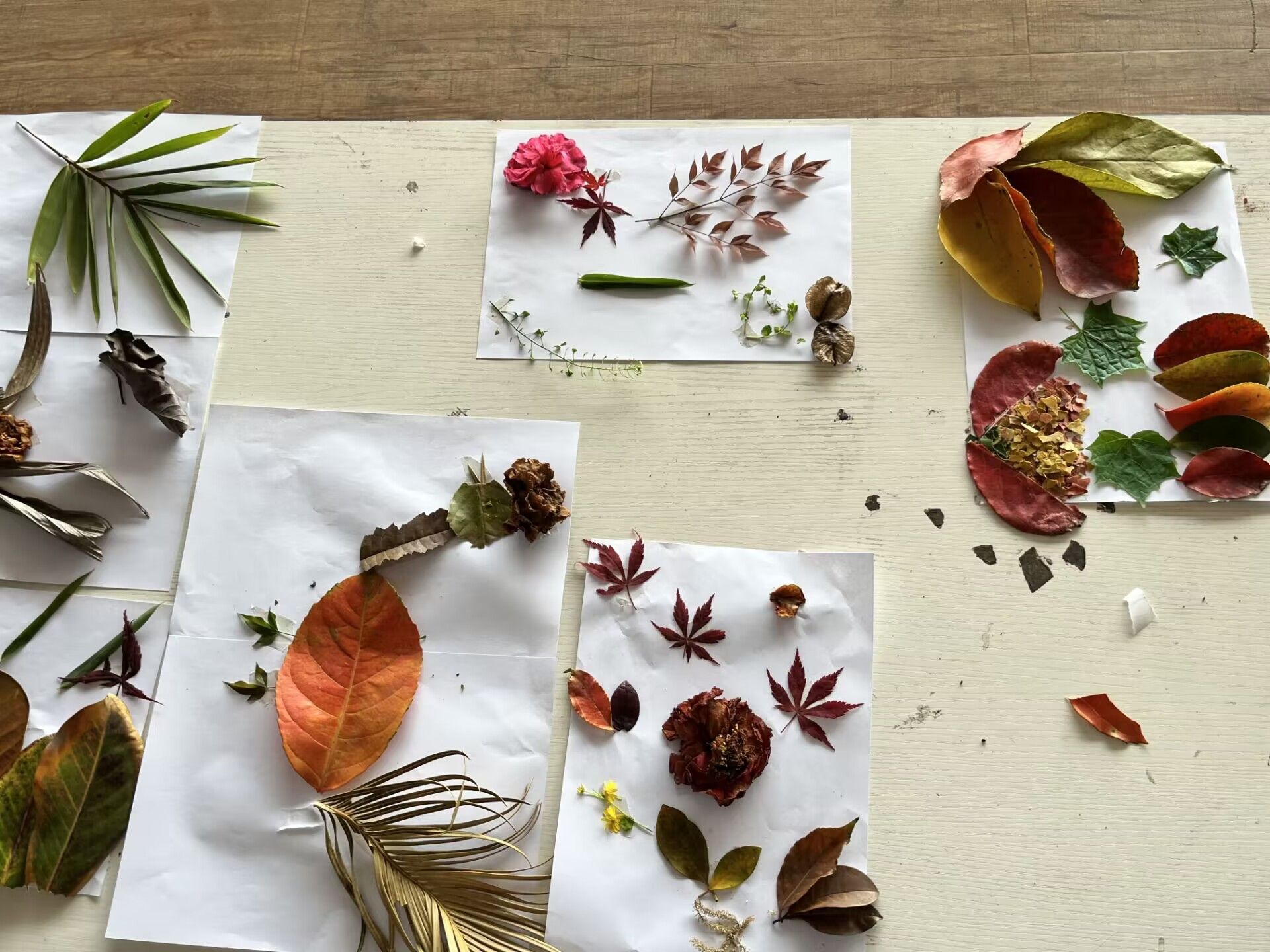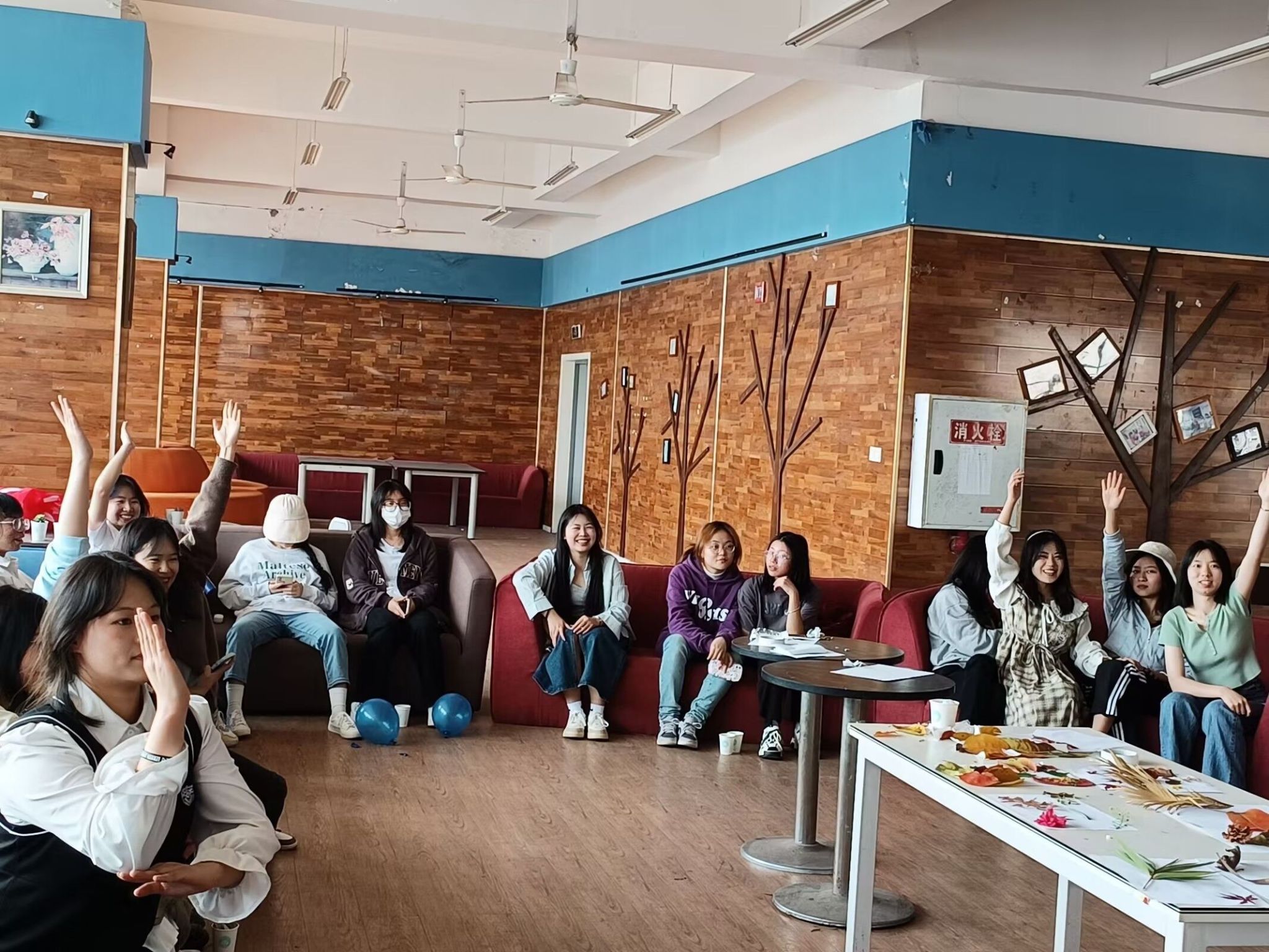 紧接着,同学们之前拾到的落叶成为主角,同学们纷纷行动起来,将打扫校园落叶时留下的奇特或好看的落叶,随意拼成自己想要的图案,其中有同学突发奇想,竟然用落叶拼成动物的形象,有的同学则选择做一个自由的“随意派”,最后同学们完成各自作品,团支书将其收集起来,在活动后期进行展示。最后来到最后一个放松环节——“个人赛”,首先由班委拿出提前准备好的花语小卡片,并向同学们提问,来猜关于花的花语、花的诗以及花的类型,答题多且正确率高的同学能够获得最终的神秘大奖;可以看到在这个小游戏中,同学们欢声大笑,乐在其中,这不仅陶冶同学们的高尚情操,也让疲惫的身心得到放松。