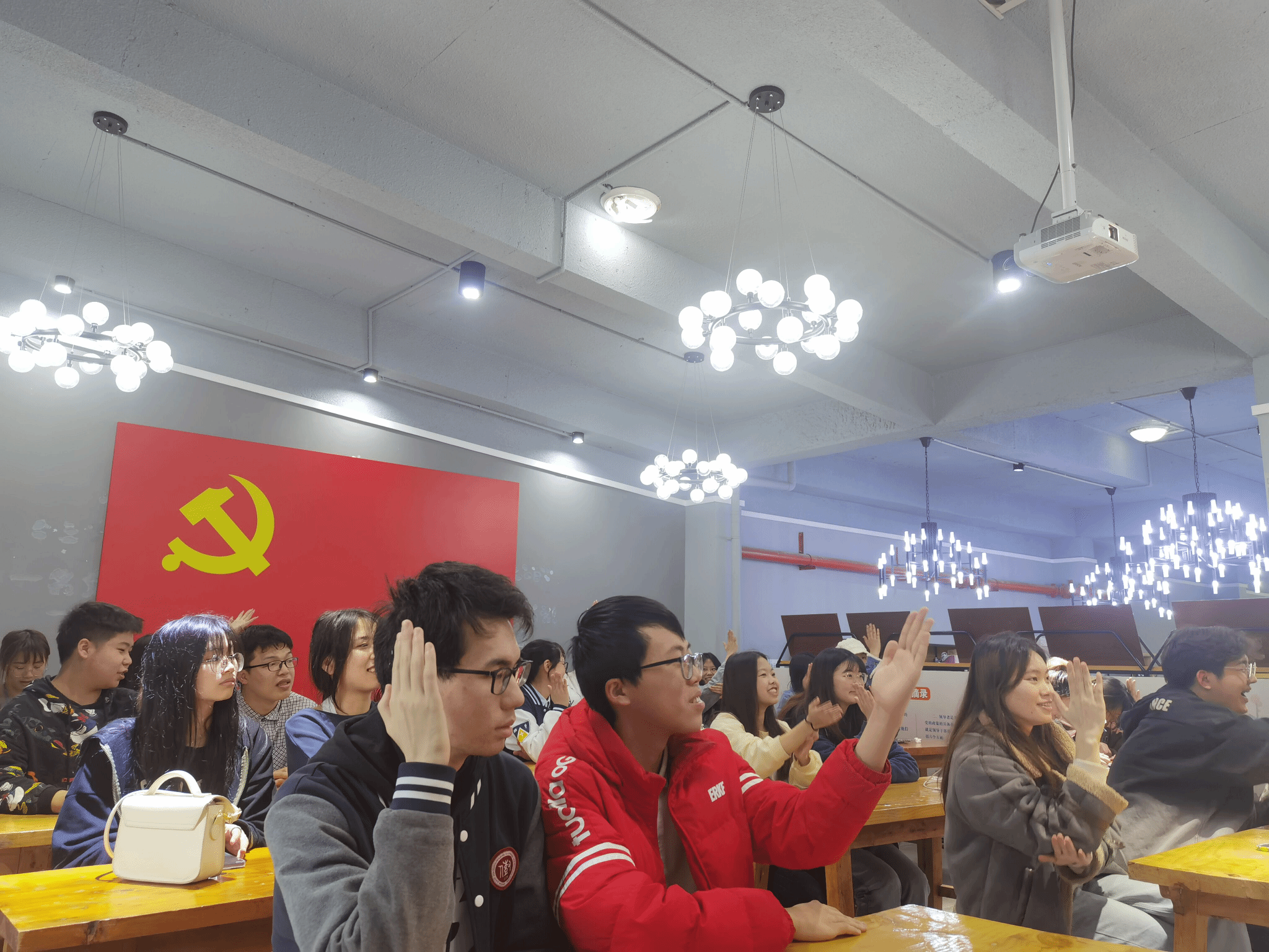 活动紧随其后的第二阶段是观赏红色影片片段。在红色影片片段的播放中,同学们屏息凝神,专注的看着红色影片。同学们不仅看到了着红色影片中出现的危机同时看到中国共产党在当时的决心。从长征时的破釜沉舟,到新中国成立时的辉煌大气,这中间经历的艰难险阻依靠短短几分钟的影片不可能陈述明了。同学们在看到共产党被追杀时会发出惊呼,在看到共产党成功时便欢喜交加。在一起一伏的情绪中,同学们被带入到那个年代。在最真实的环境下,感悟红色精神带给中国共产党的力量,带给中国人民的力量。