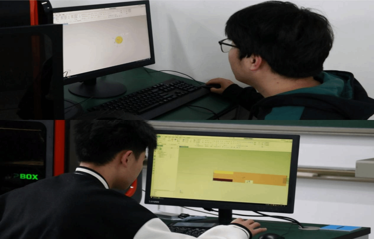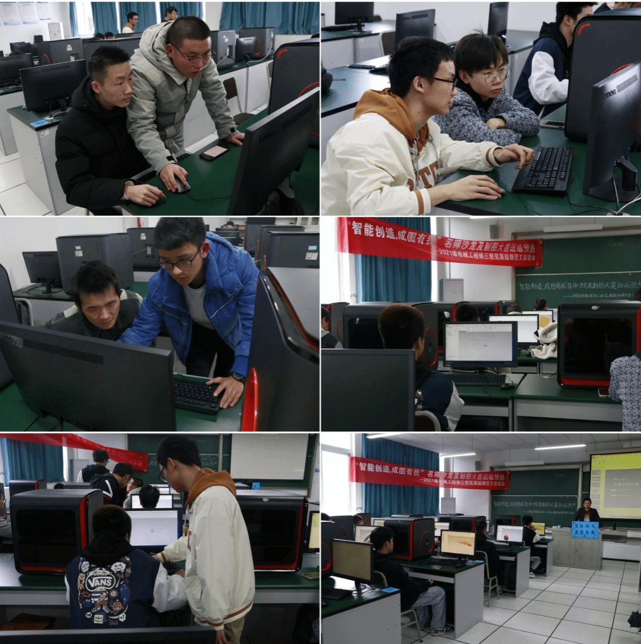 听完了老师的经验分享,要想将其完全变为自己的,还是得实际操作。老师也是十分贴心的为同学们准备了一套简化版真题,让同学们以小组为单位结合刚才所学的实际操作“UG”软件进行绘图。随着比赛的开始,现场也变得十分活跃,教室里充满了同学们讨论的声音,经过同学们的不懈努力,各小组的作品也有序完成。