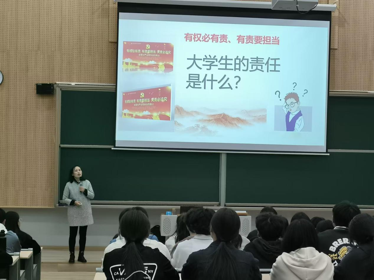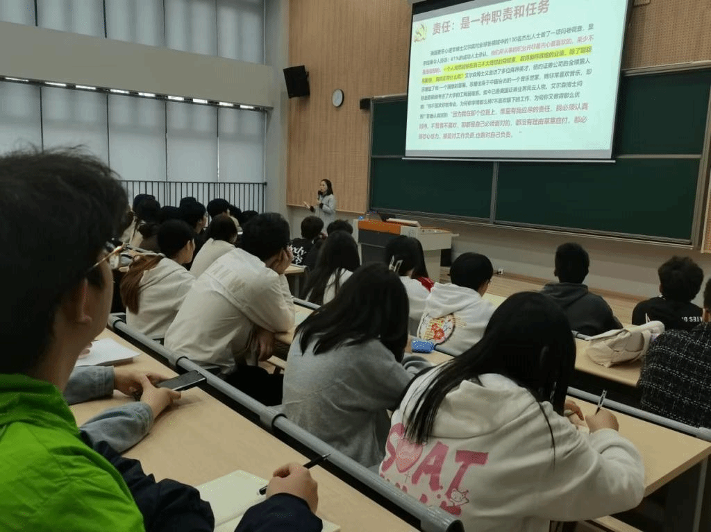 首先,潘家玲老师从新时代青年的担当和责任是什么讲起。让我们明白新时代青年应该有是对自己,对家庭,对社会,对国家的责任担当,我们也需要知道责任是一种职责和任务,担当是一种使命,一种素质,更是一种美德。