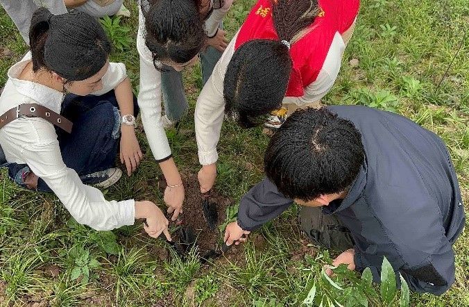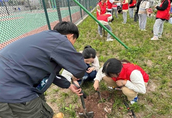 本次“植”一抹绿,心栽一片林一植树节志愿服务活动由两个部分组成,植树造林理论宣讲和种植树苗实践。理论宣讲中提到树木对我们来说是多么得重要,不仅在价值层面,更在环境社会起着不可或缺的作用。“绿水青山就是金山银山”明确了新时代中国生态文明建设的行动指南。让我们了解到了环保理念和各类树苗的基础知识。本次植树具有特殊意义,所有的树苗皆为首批同学们自己亲手在校园内种下的树苗。因此在植树造林实践中,学员们愈发积极主动,都沉浸其中,互相协作,一棵一棵地种下代表希望的第一批树苗,在流下辛勤的汗水同时也感受到美好生活环境的来之不易。
