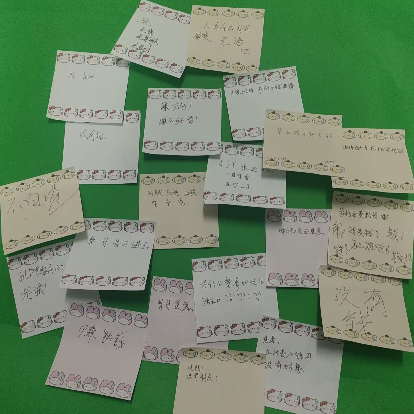 随后,大家依次上台分享提前准备的诗歌,一起感受在当下骨感生活中的诗歌美,并且让同学们匿名写下各自最近的烦恼,将所有便利贴贴在一起,形成一个完超作品展,希望同学们能将烦恼留在这块作品展上,去收获今后的大学生活最纯真的快乐。