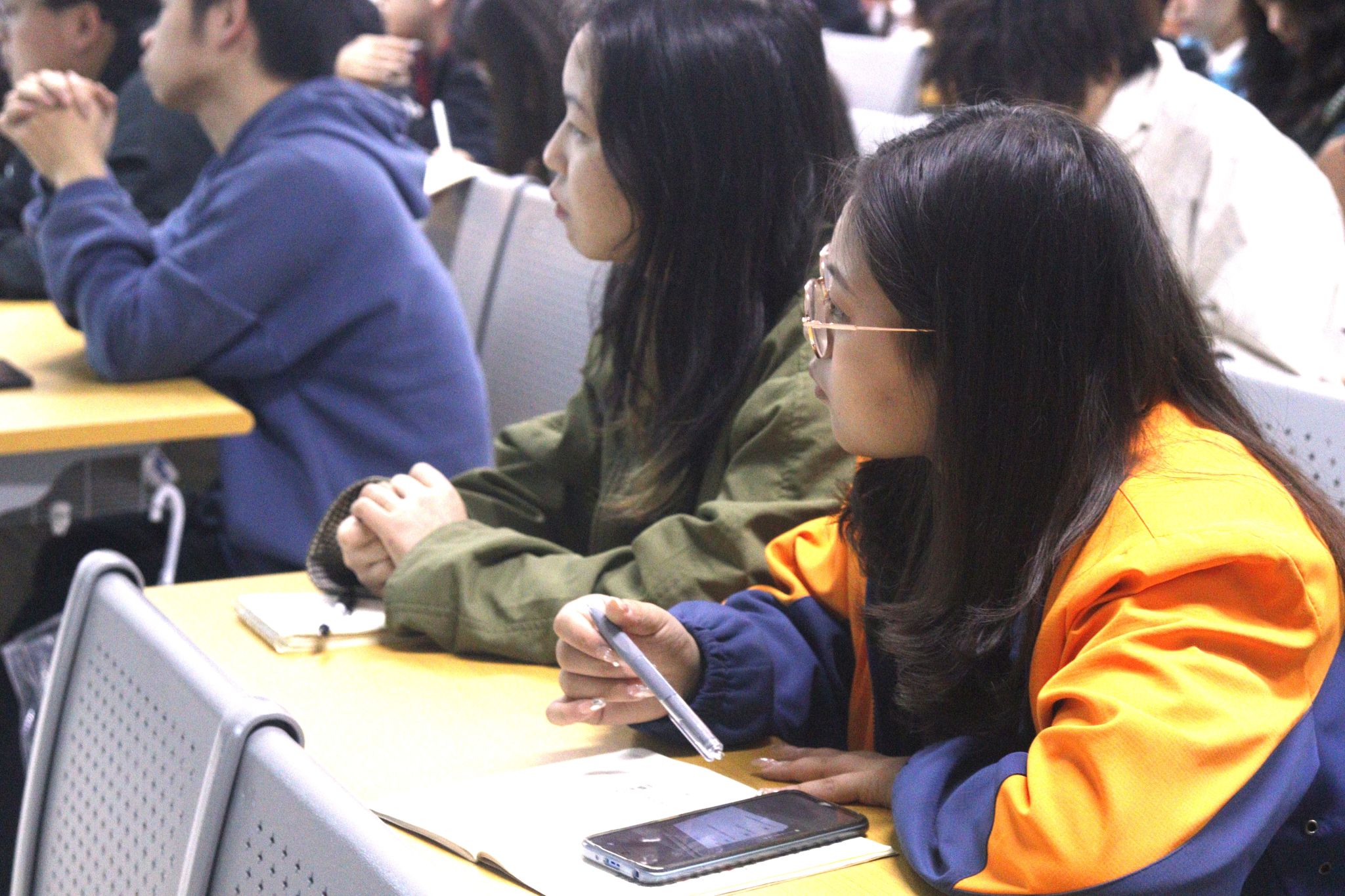 紧接着,孙老师从新闻稿的标题、导语、正文、结尾四个要点向同学们讲解了新闻稿的写法。标题主要有主标式和复合标题,且标题应该准确,鲜明,凝练,生动,以便阅读者迅速了解新闻主要内容;导语需要抓住新闻事件的核心,吸引读者看下去,是文章中最重要的信息内容,其中她总结导语主要有目的式、背景式、描写式、设问式等几种常见类型;正文需用充足的事实表现主题,根据新闻事实的具体情况,可以按照时间顺序、逻辑顺序进行展开;结尾部分则要求总结层次需提高,对前文内容有所交代,或提出希望,或进行鼓舞。