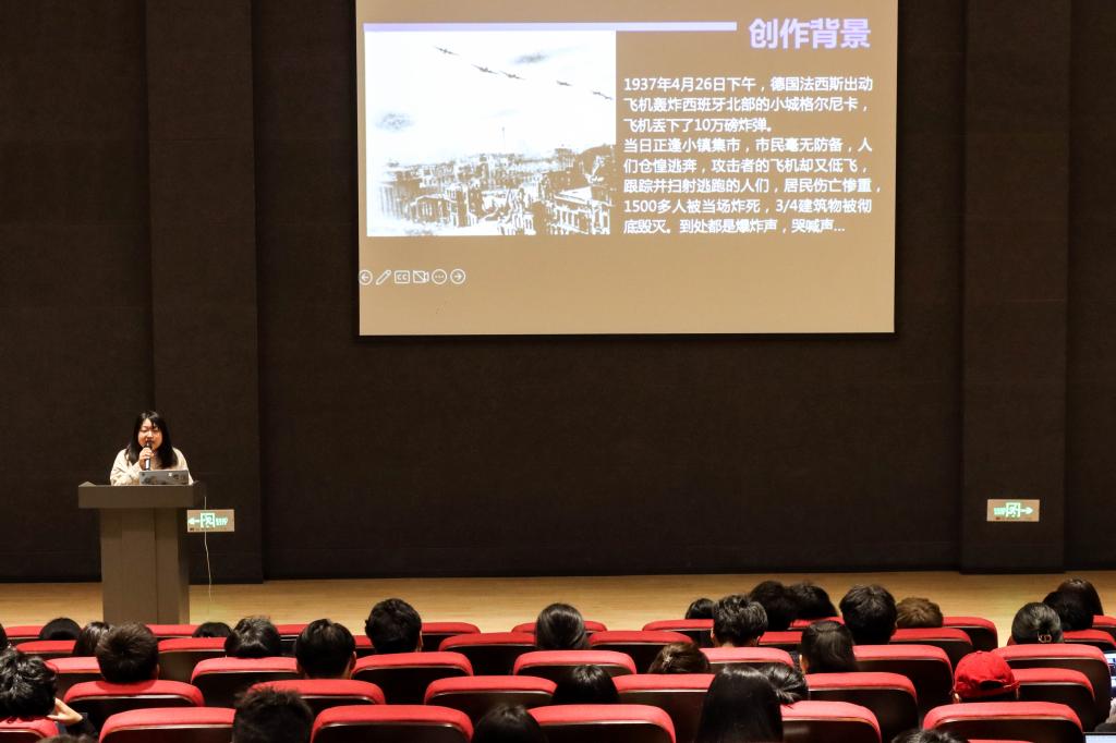紧接着,老师从立体主义、达达主义、超现实主义三个艺术流派分别展开来讲解了拼贴艺术的历史发展和不同的拼贴手法,并通过巴勃罗•毕加索和乔治•布拉克两位艺术家的作品与同学们进行了鉴赏与分析,让同学们可以更加理解拼贴艺术其间的奥妙与当中深刻的历史意义。