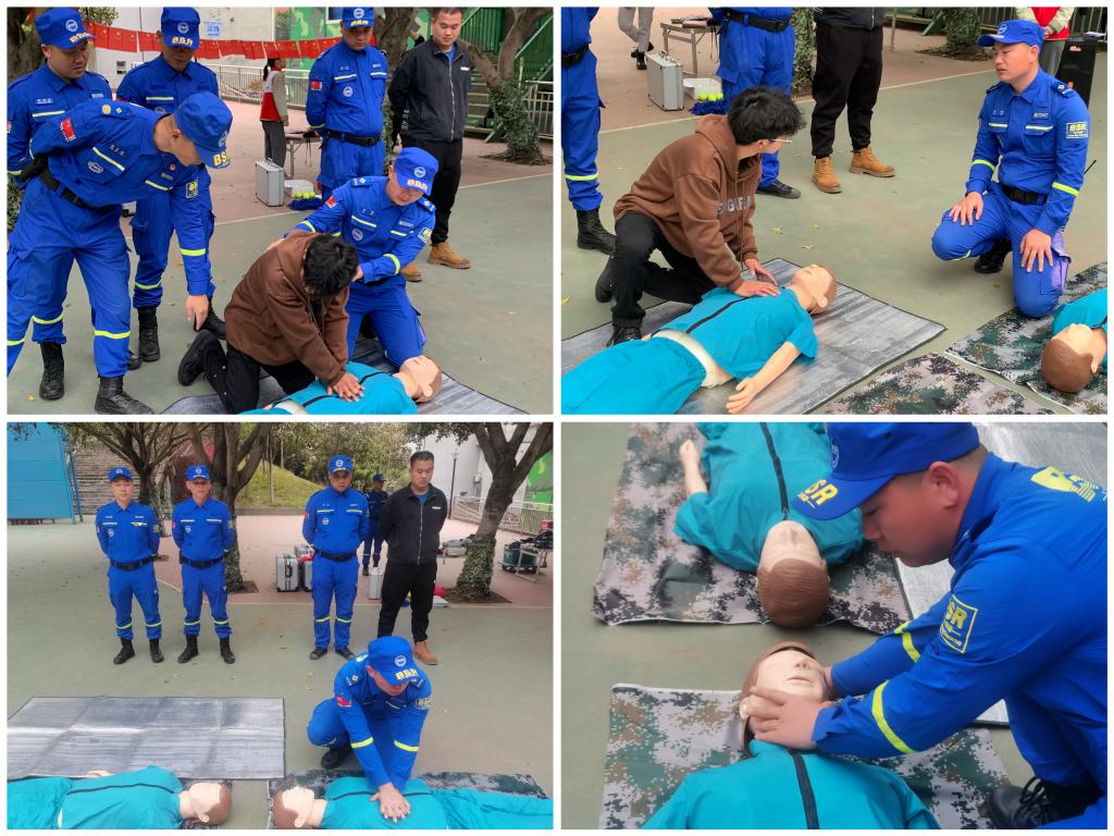 致知力行,蹱事增华。认识来源于实践,只有不断的深入实践,知识才会不断的增长。为了让青马学员在面对突如其来的危机时能够拥有一定的救援知识进行自救,甚至是用自身的相关知识去救助他人。淬炼·国际商学院团总支组织部特意邀请到重庆市合川区蓝天救援队的队长与队员于2023年3月15日下午四点前来淬炼营地参与“学思践悟筑初心·锤炼本领担使命”——淬炼·国际商学院第五届“青马工程”完满教育学生骨干培养计划特色实践活动。