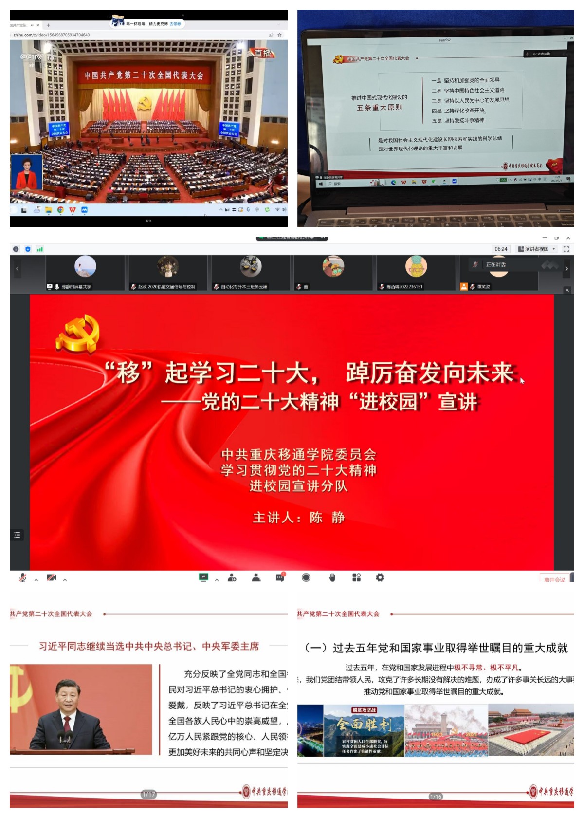 为了全面学习、全面把握、全面落实党的二十大精神,履行引领凝聚青年、组织动员青年、联系服务青年的基本职责,3月1日14时,中共重庆移通学院委员会学习贯彻党的二十大精神进校园宣讲分队,以腾讯会议形式开展“学习贯彻党的二十大精神进校园宣讲”。智能工程学院学生党支部党员代表、外国语学院学生党支部全体党员参会。